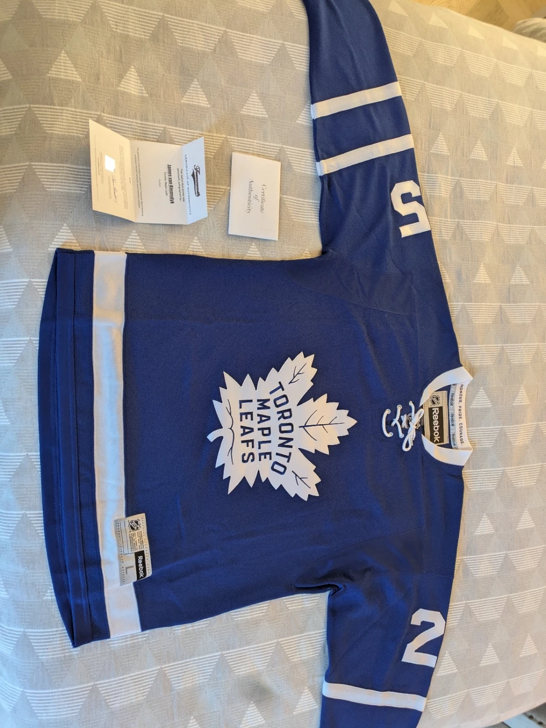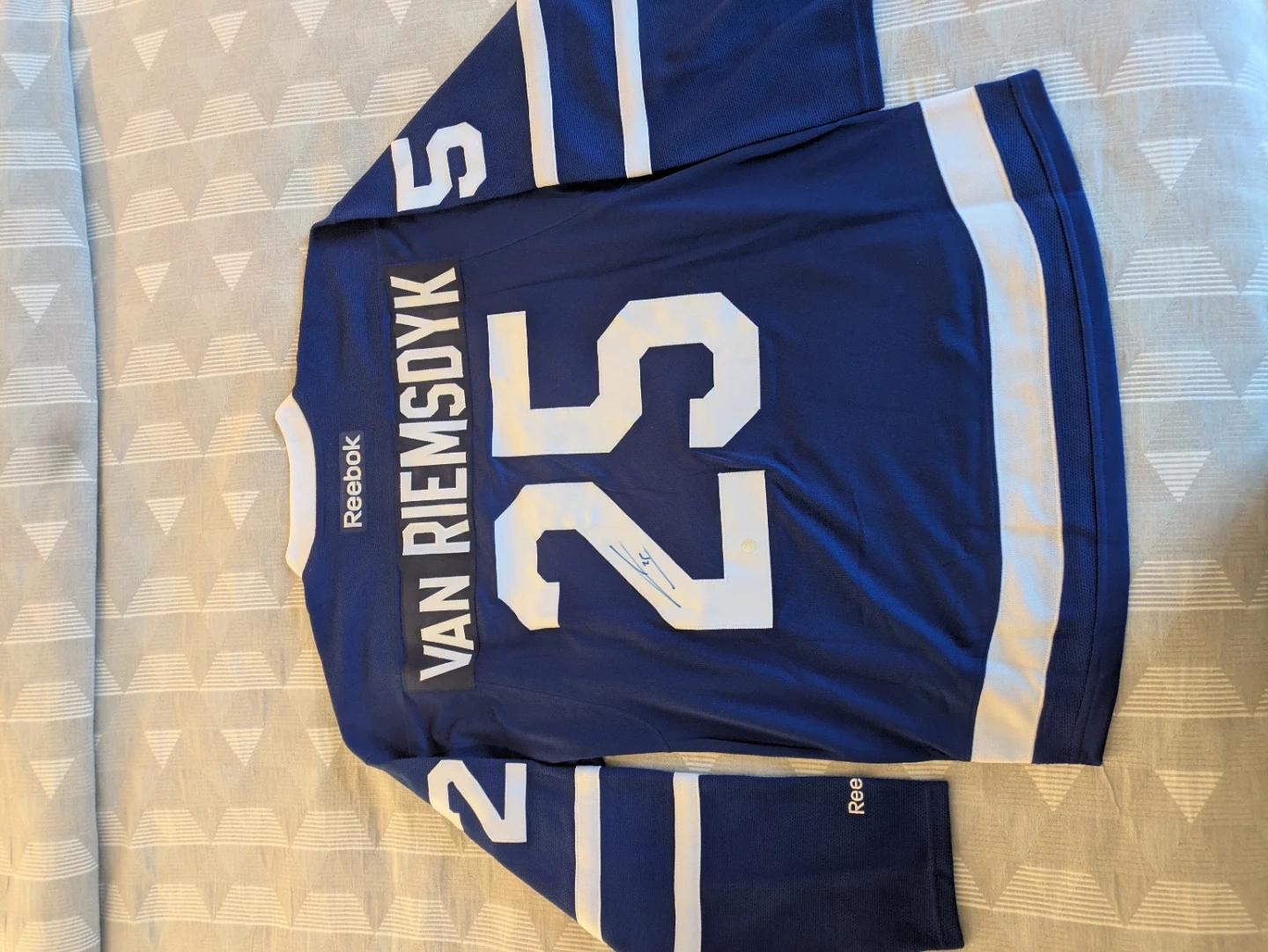 Buy & SellReebok Toronto Maple Leafs Van Riemsdyk #25 Signed JerseyReebok Toronto Maple Leafs Van Riemsdyk #25 Signed Jersey$140Reebok Toronto Maple Leafs replica jersey signed by JVR. It's a size large in blue and white. Includes a certificate of authenticity.WHERE TO MEETCheck LocationView MapSELLERverifiedJimCoal Harbour19314 reviews0 chats·0 favorites·1 viewsSEND CHAT TO SELLERHi Jim! I’m interested in your listing.Hi Jim! I’m interested in your listing.Get the Karrot app to chatSign In to chat