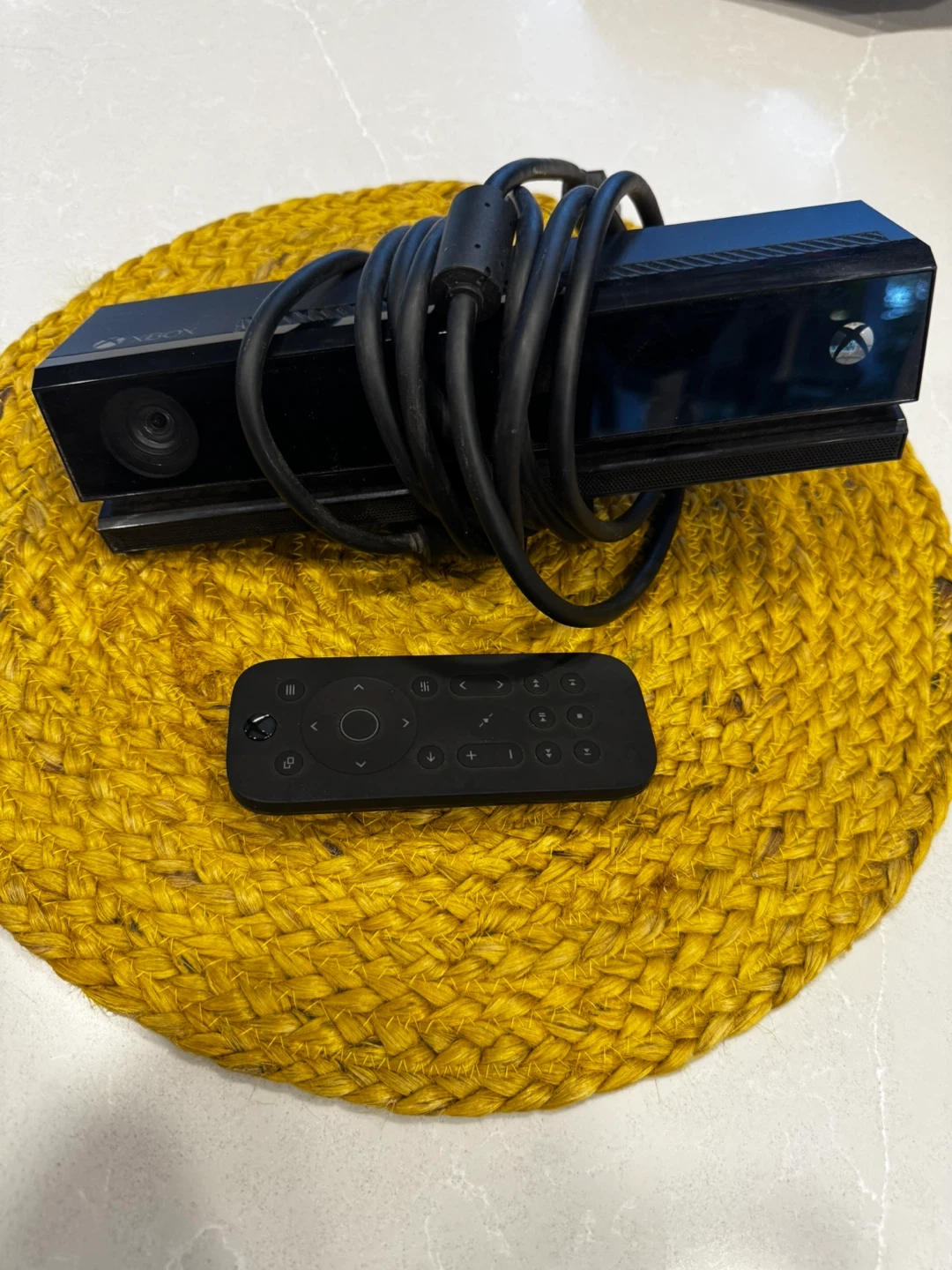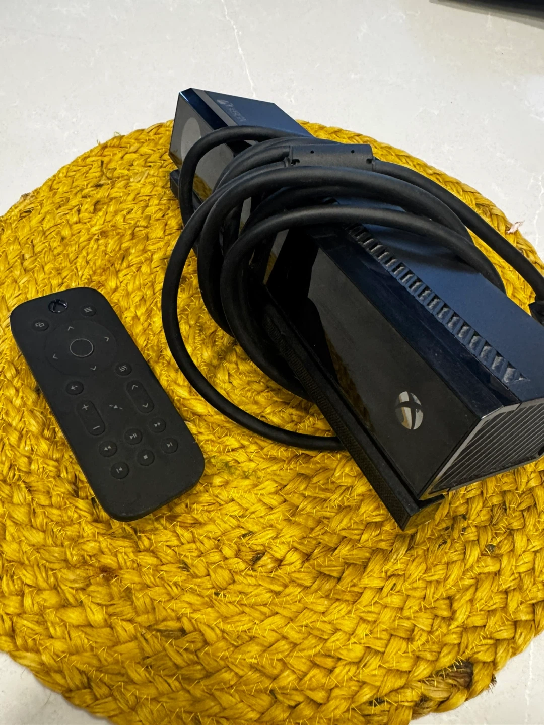 This is an Xbox One Kinect sensor and remote. It's a black accessory for motion gaming. The sensor connects to your console for interactive experiences.