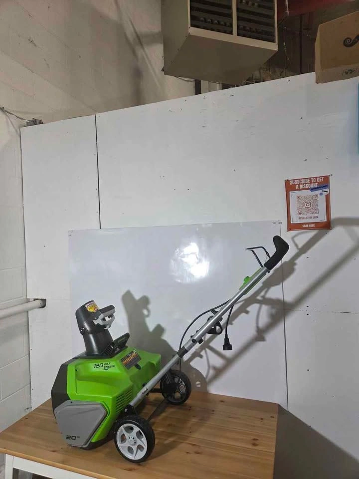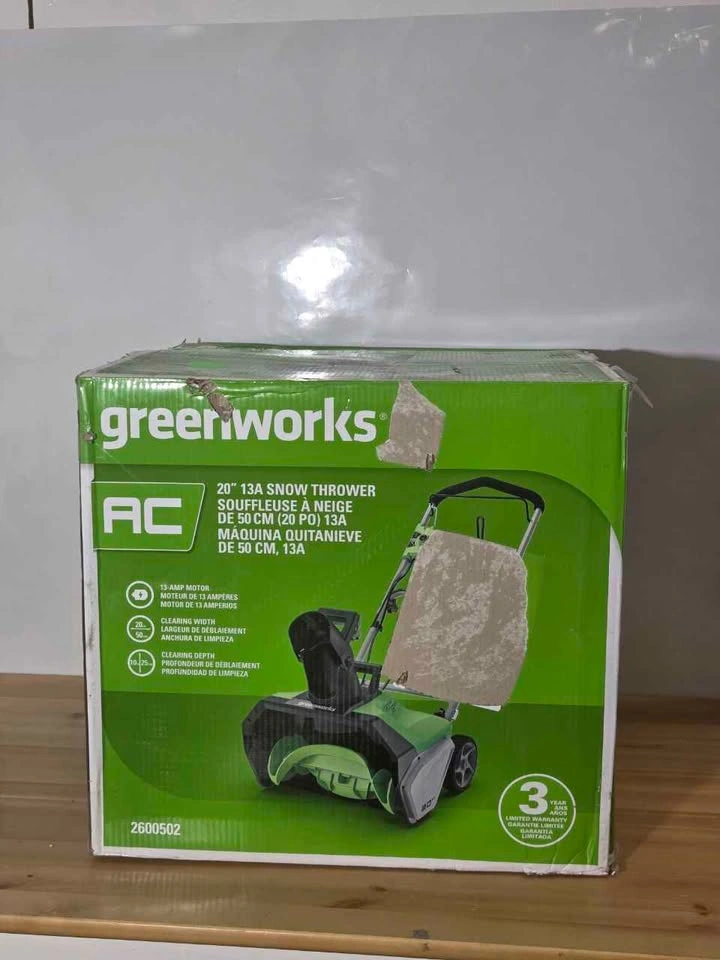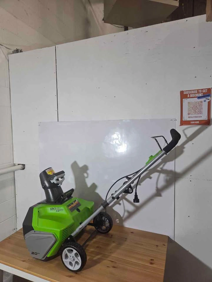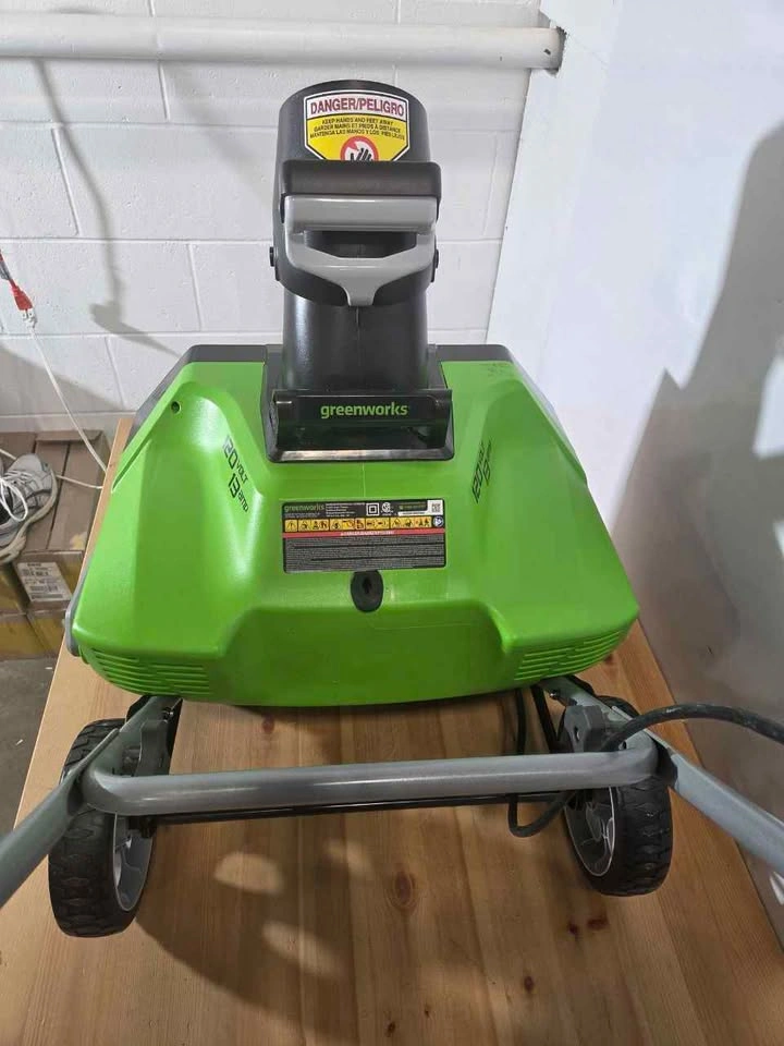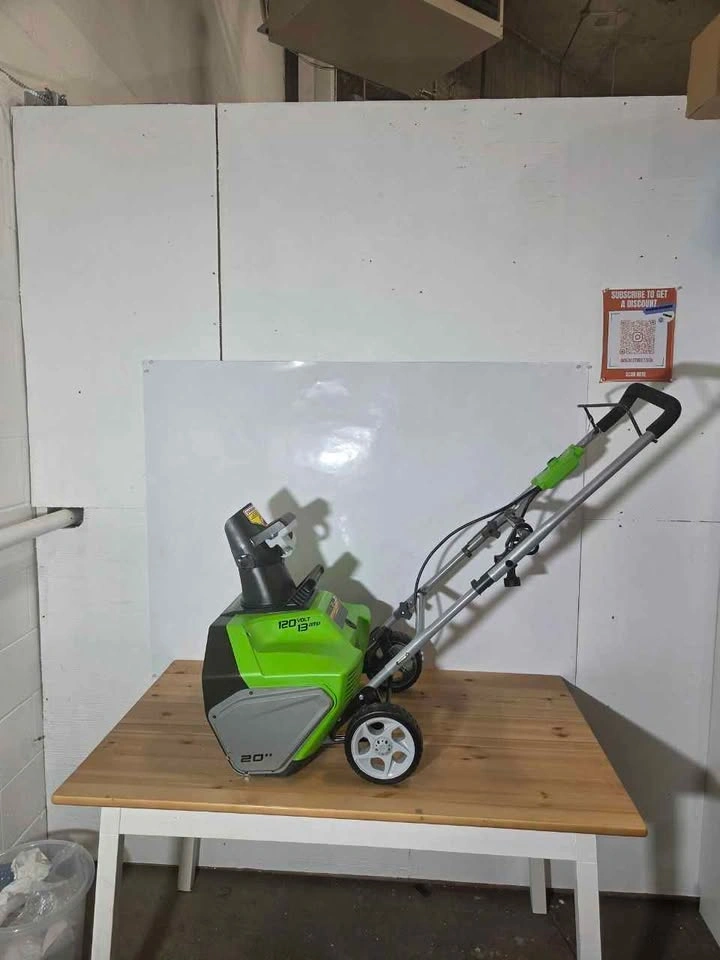 Good condition. 13 Amp motor provides reliable power for snow clearing. 20-inch clearing width handles driveways and walkways fast. Corded design offers consistent performance without charging. Lightweight and easy to maneuver in tight spaces. Ideal for small to medium areas around the home. Simple to use and ready for winter conditions.