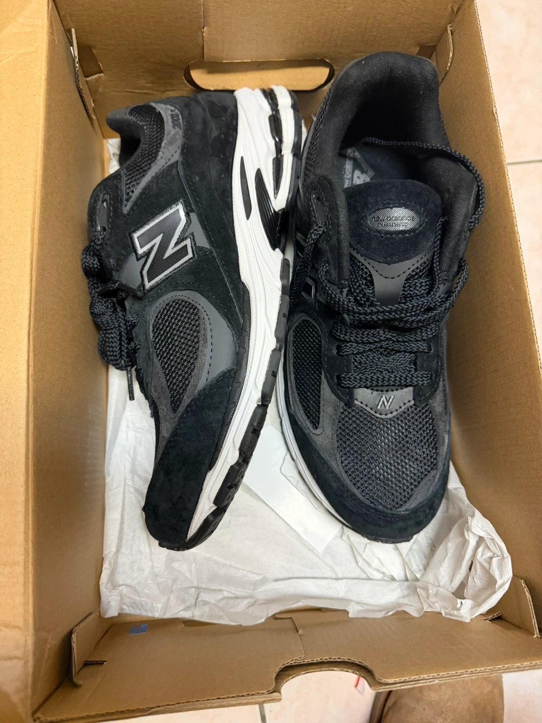 Selling a pair of New Balance 2002R sneakers in a sleek black and grey colourway! These shoes are in great condition and come with the original box. Perfect for everyday wear or hitting the gym