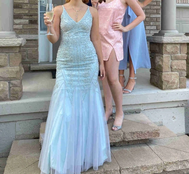 Buy & SellProm DressProm Dress$800Worn once (2020 grad). Minty green/blue. Originally $950. Happy to provide more images or video call to show dress in more detail.WHERE TO MEETCheck LocationView MapSELLERElleOrchard100 reviews0 chats·0 favorites·36 viewsSEND CHAT TO SELLERHi Elle! I’m interested in your listing.Hi Elle! I’m interested in your listing.Get the Karrot app to chatSign In to chat