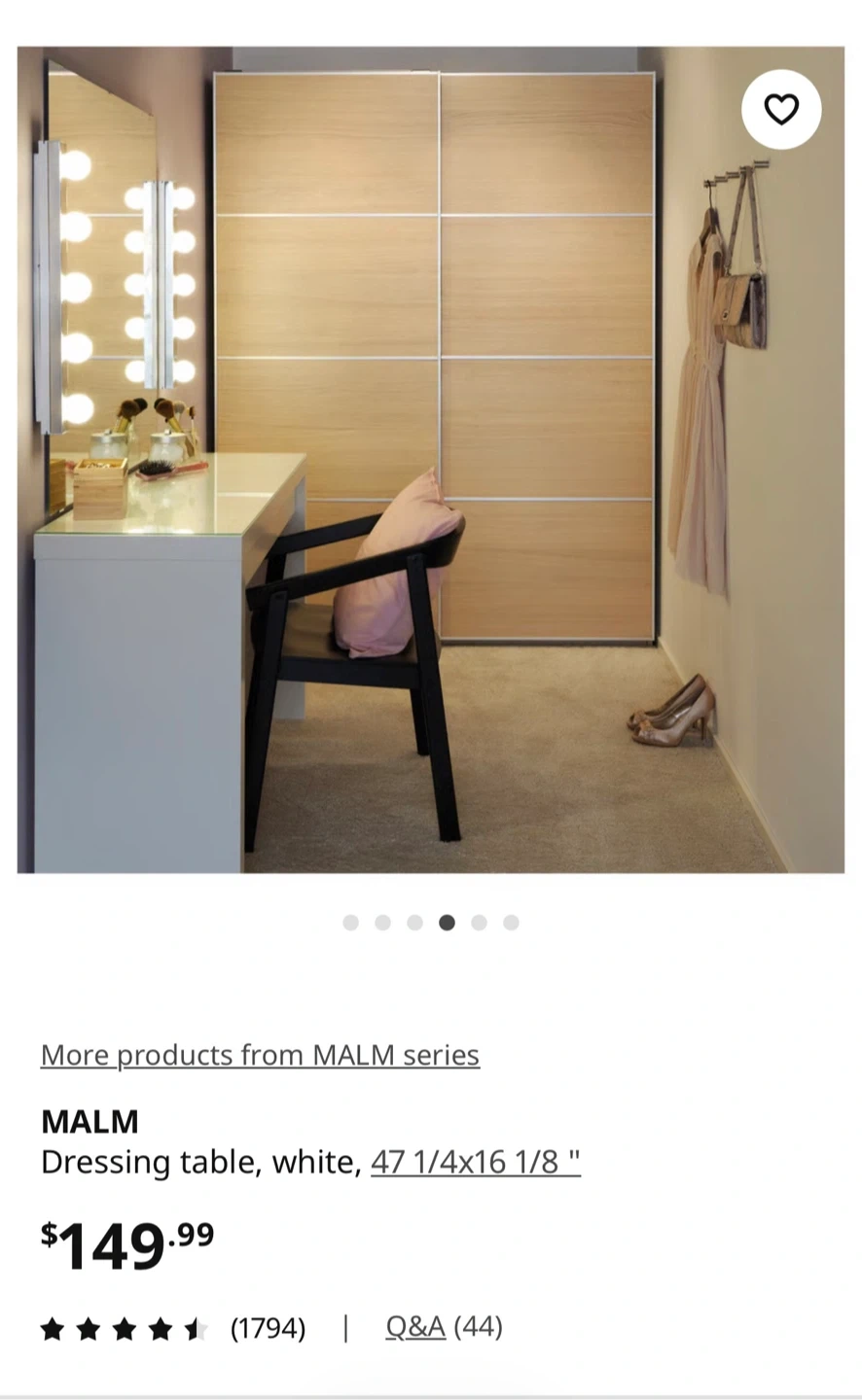 Buy & SellIkea MALM Dressing tableIkea MALM Dressing table$70In excellent condition. Pickup in an elevator building.ConditionLike newWHERE TO MEETCheck LocationView MapSELLERLauEast Harlem100 reviews0 chats·2 favorites·107 viewsSEND CHAT TO SELLERHi Lau! I’m interested in your listing.Hi Lau! I’m interested in your listing.Get the Karrot app to chatSign In to chat