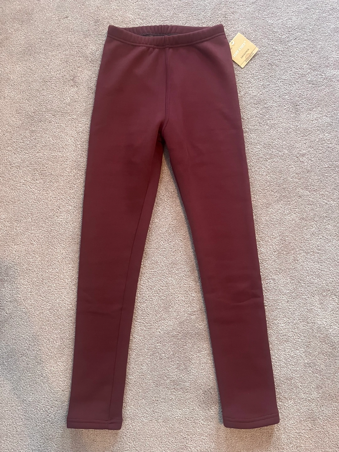 **NEW** JUST COZY Burgundy fleece lined leggings. Size xs-s