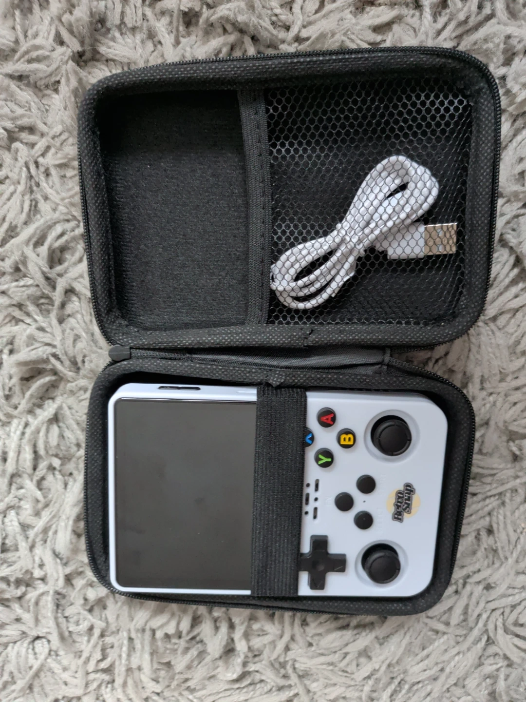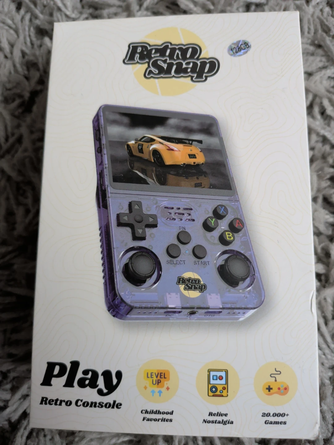 This white Retro Snap handheld console comes with a charging cable and protective case. It offers 20,000+ games for endless fun. Relive childhood favourites with this compact gaming device!