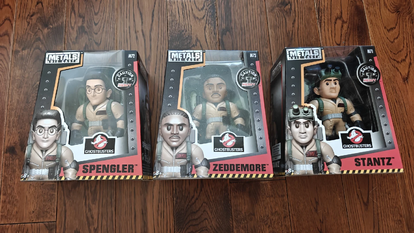 Selling three Ghostbusters Metals Die Cast figures, each in its original packaging. You'll get Spengler, Zeddemore, and Stantz. These figures are from the Metals Die Cast series and come in their boxes. Perfect for any Ghostbusters fan or collector!