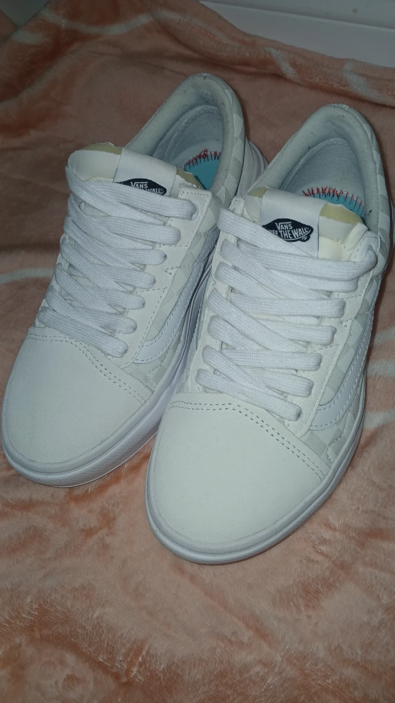 Authentic Vans Old Skool in classic white checkerboard pattern. Shoes are clean and in good condition, but removable insoles are missing. Perfect for DIY, crafting, or someone who wants to replace insoles. Great project pair for Vans fans or streetwear lovers!
