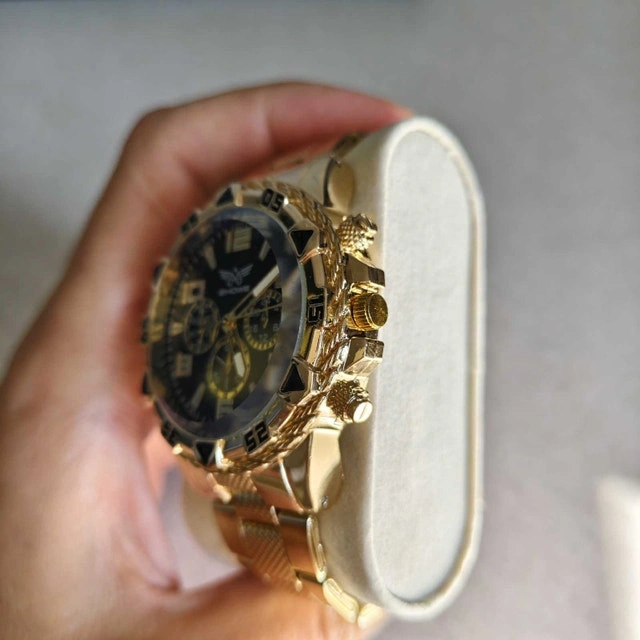 Elevate your wrist game with this premium design golden luxury watch. This eye-catching timepiece features a bold design and a lustrous golden finish. The watch has a distinctive and luxurious aesthetic. The watch is brand new, not worn. Colour: Gold. Style: Luxurious. If the ad is up, it's still available! Pick up in Halifax. I have other options available, check my ads by pressing "Seller details" below.