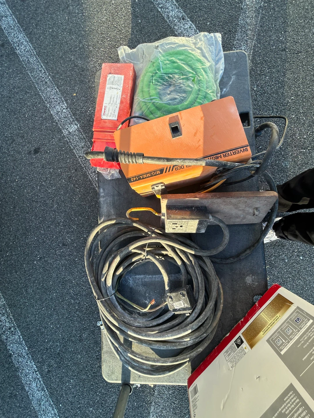 Selling an Inweld MIGMMA-140 welder. It comes with several components including a green hose and a red case. Please see photos for details!