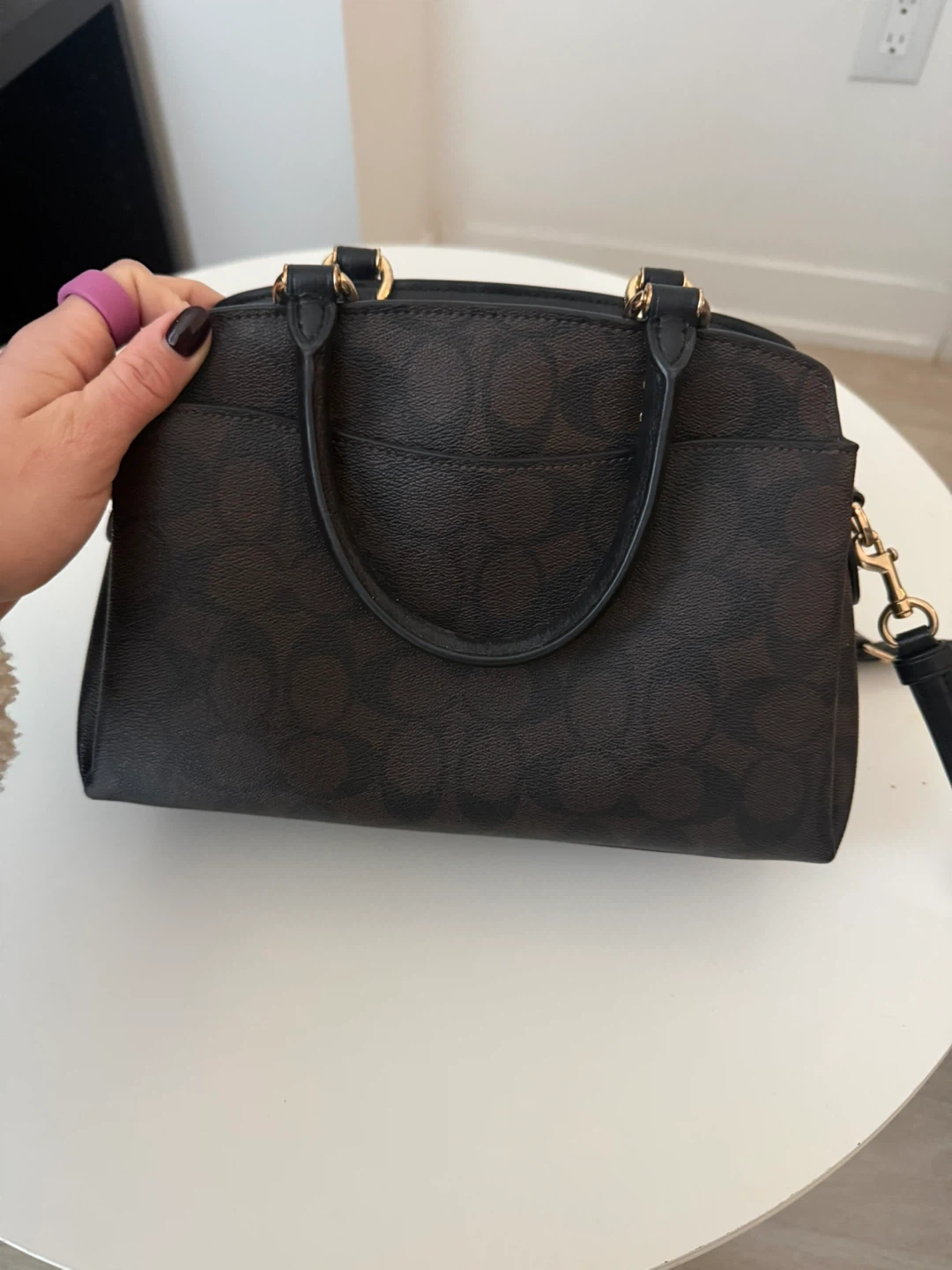 Buy & SellCoach Signature Brown Satchel PurseCoach Signature Brown Satchel Purse$190Brown Coach.Includes a detachable crossbody strap. This purse is perfect for everyday use!ConditionGoodBrandCoachWHERE TO MEETCheck LocationView MapSELLERMarcelaConcord151 review0 chats·2 favorites·51 viewsSEND CHAT TO SELLERHi Marcela! I’m interested in your listing.Hi Marcela! I’m interested in your listing.Get the Karrot app to chatSign In to chat