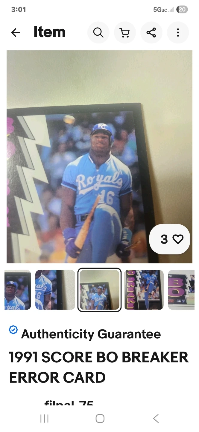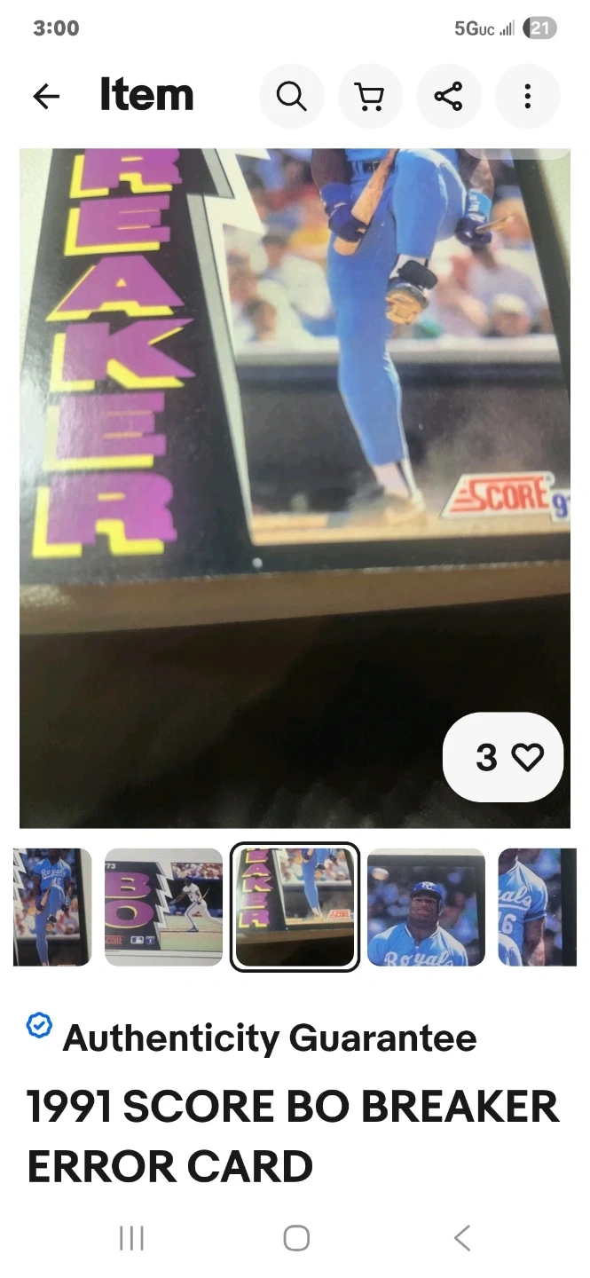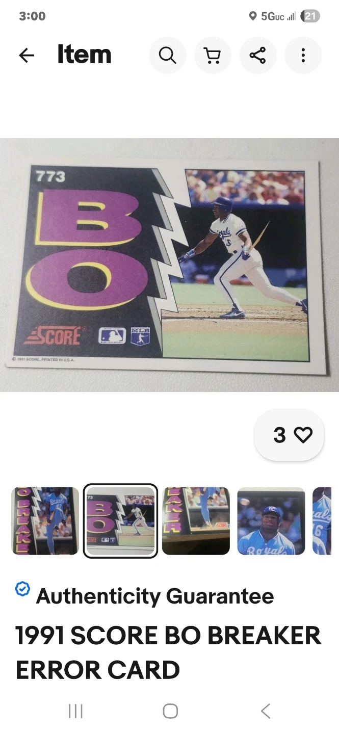 Buy & Sell1991 Score Bo Breaker Error Baseball Card1991 Score Bo Breaker Error Baseball Card$250This is a 1991 Score Bo Breaker baseball card. It's an error card and a collectible item.WHERE TO MEETCheck LocationView MapSELLERphilHartsdale100 reviews0 chats·1 favorites·5 viewsSEND CHAT TO SELLERHi phil! I’m interested in your listing.Hi phil! I’m interested in your listing.Get the Karrot app to chatSign In to chat