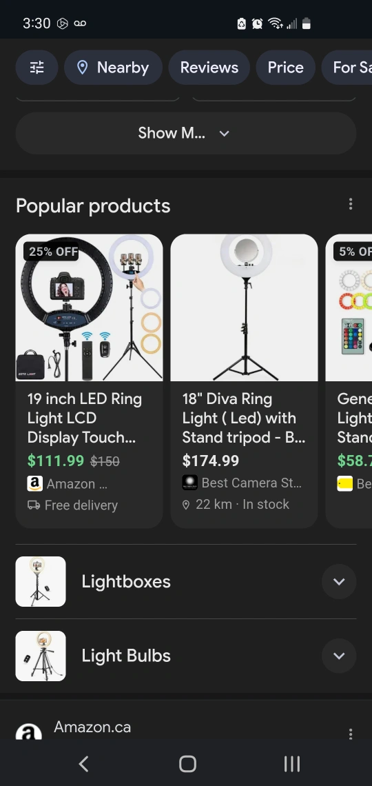 Professional Ring light with tripod, phone holder, small mirror, and carrying case. Includes power adapter and cable and bag.