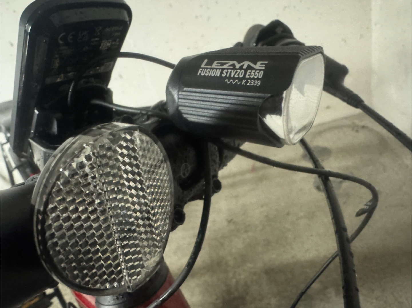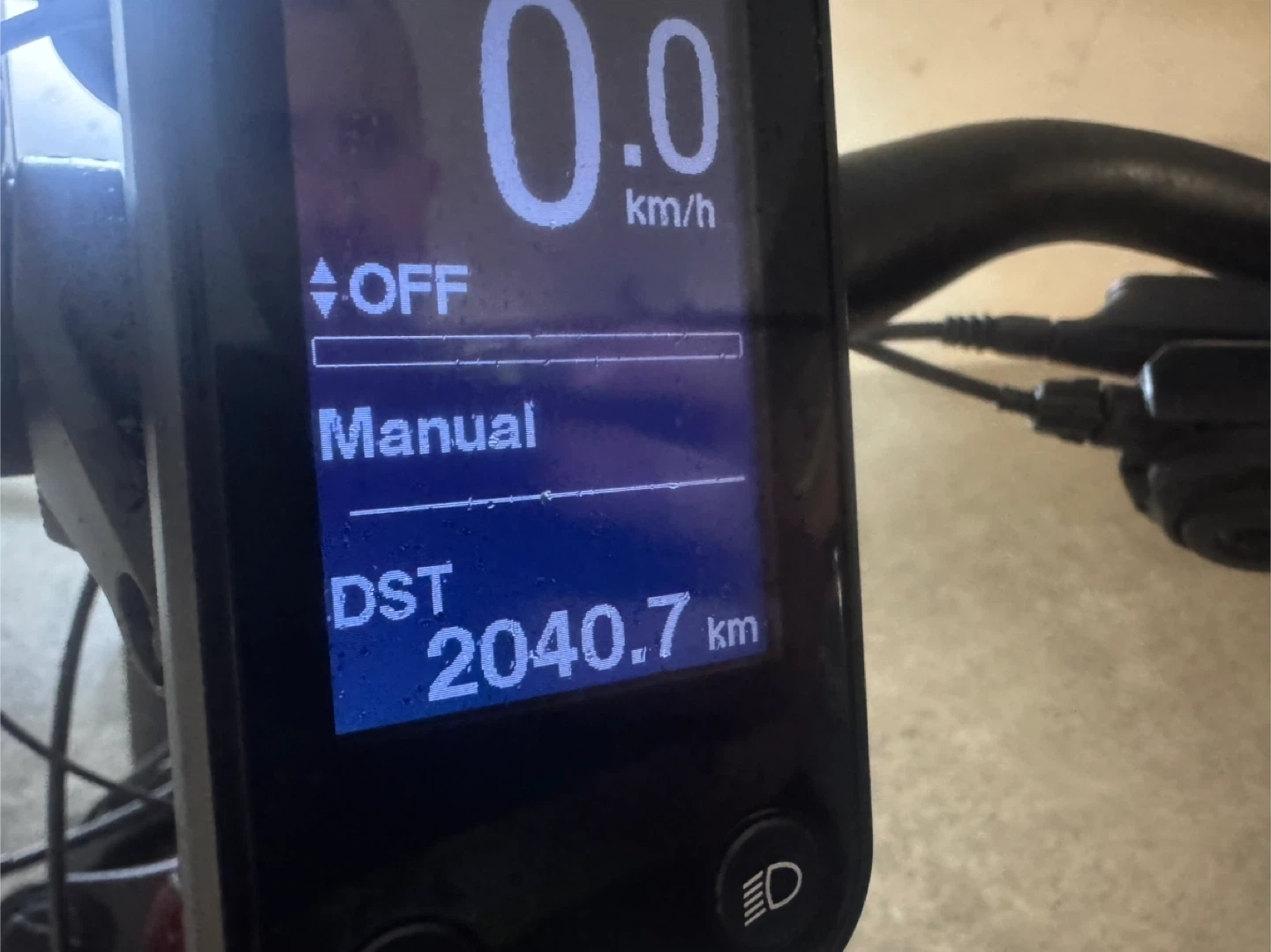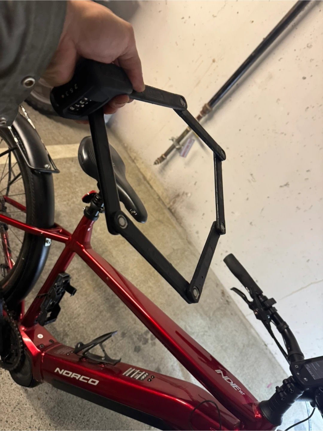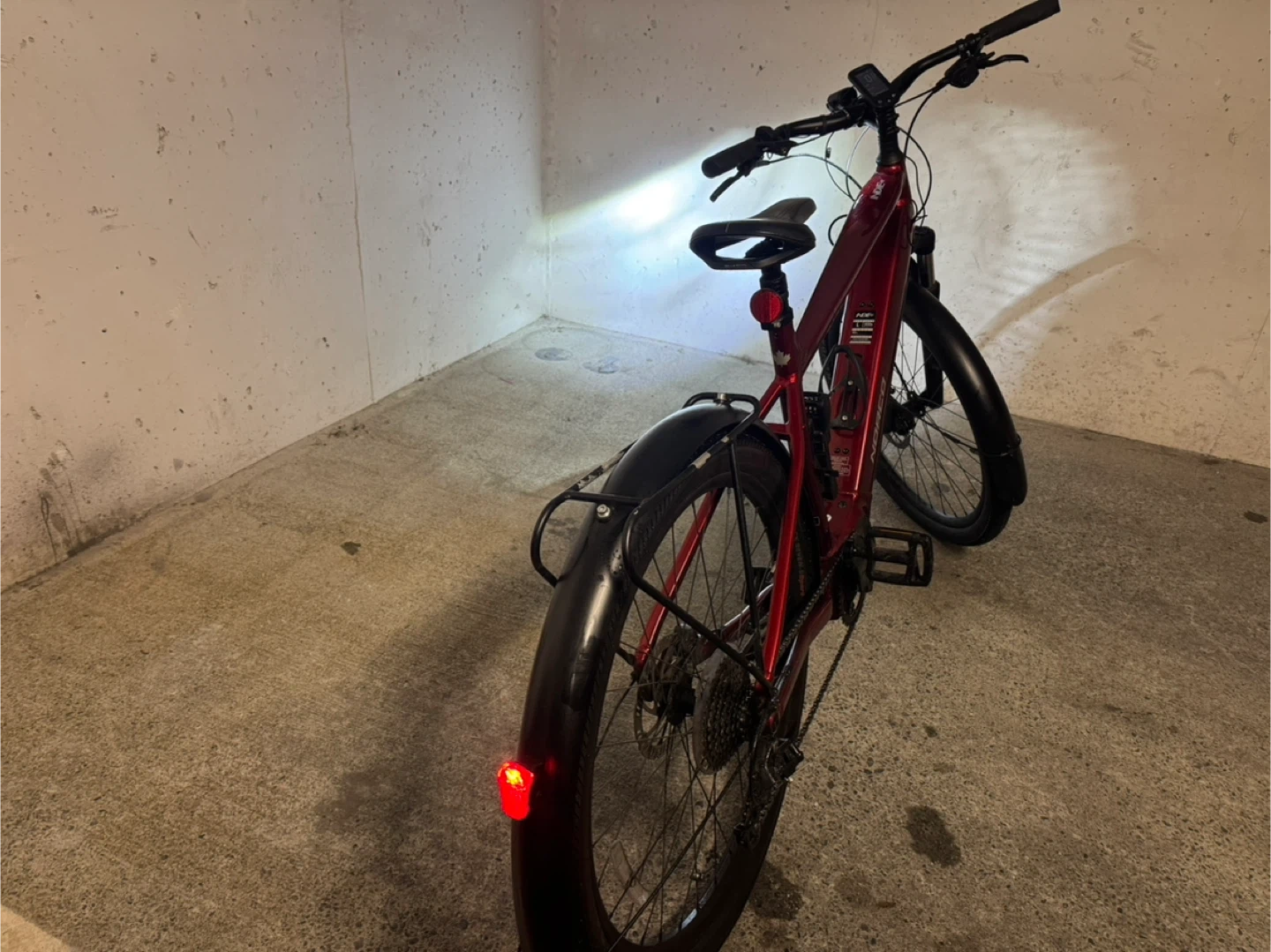 Red Norco electric bike with a Canadian maple leaf decal. It has travelled 2040.7 km. Features include fenders and front/rear lights. Ready for your next ride!
