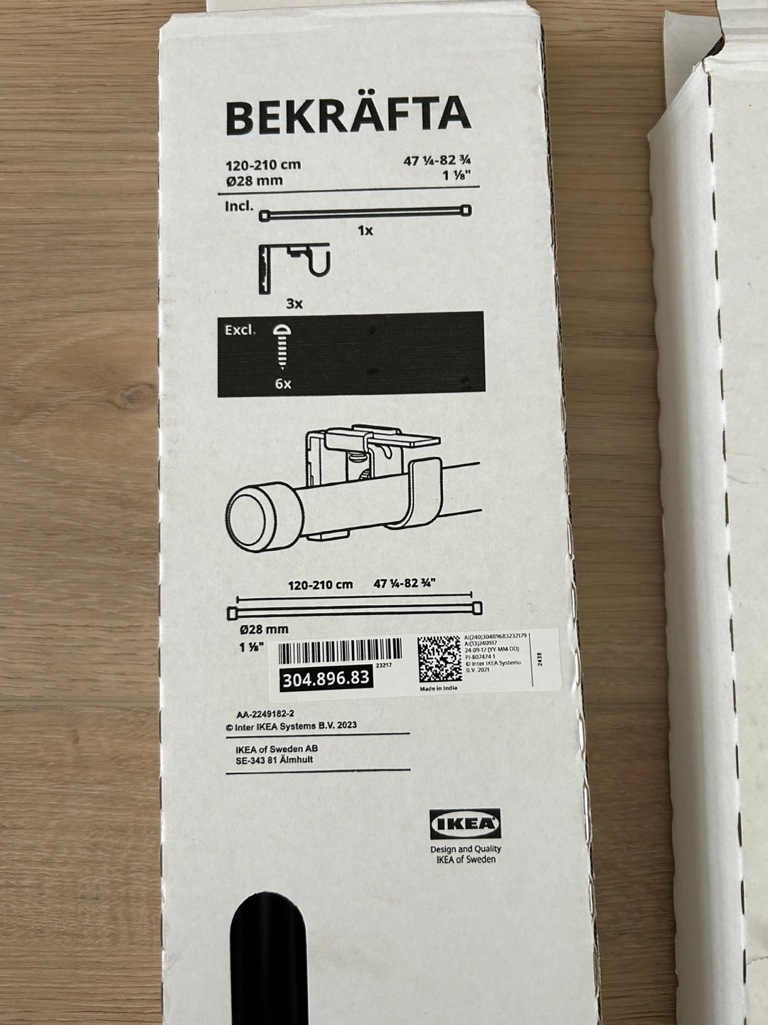 Two brand new IKEA BEKRÄFTA curtain rods. 120-210 cm extendable. Black colour. In original packaging.