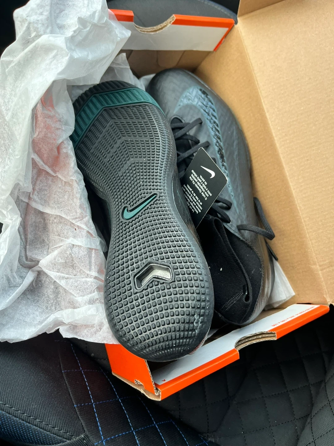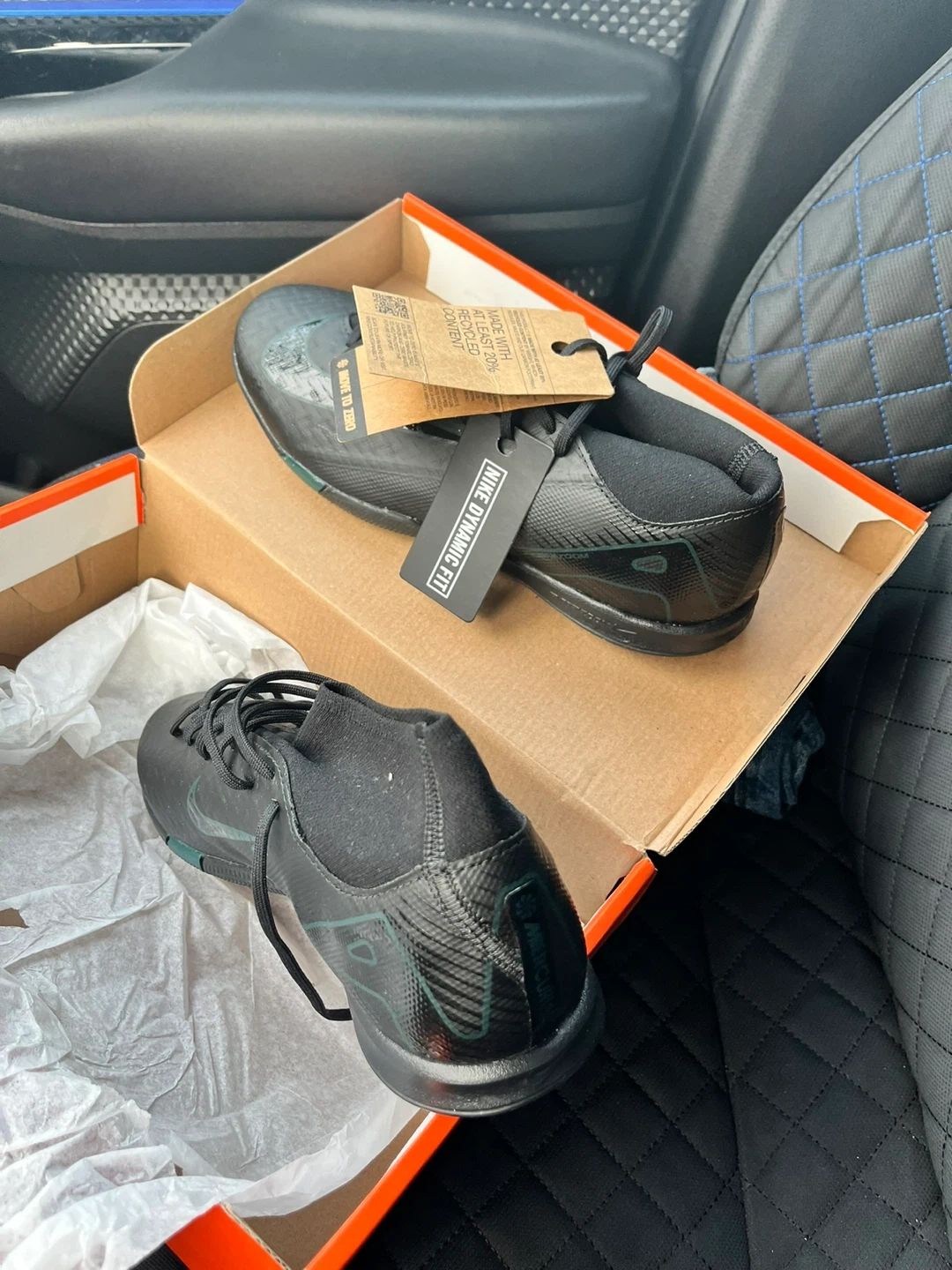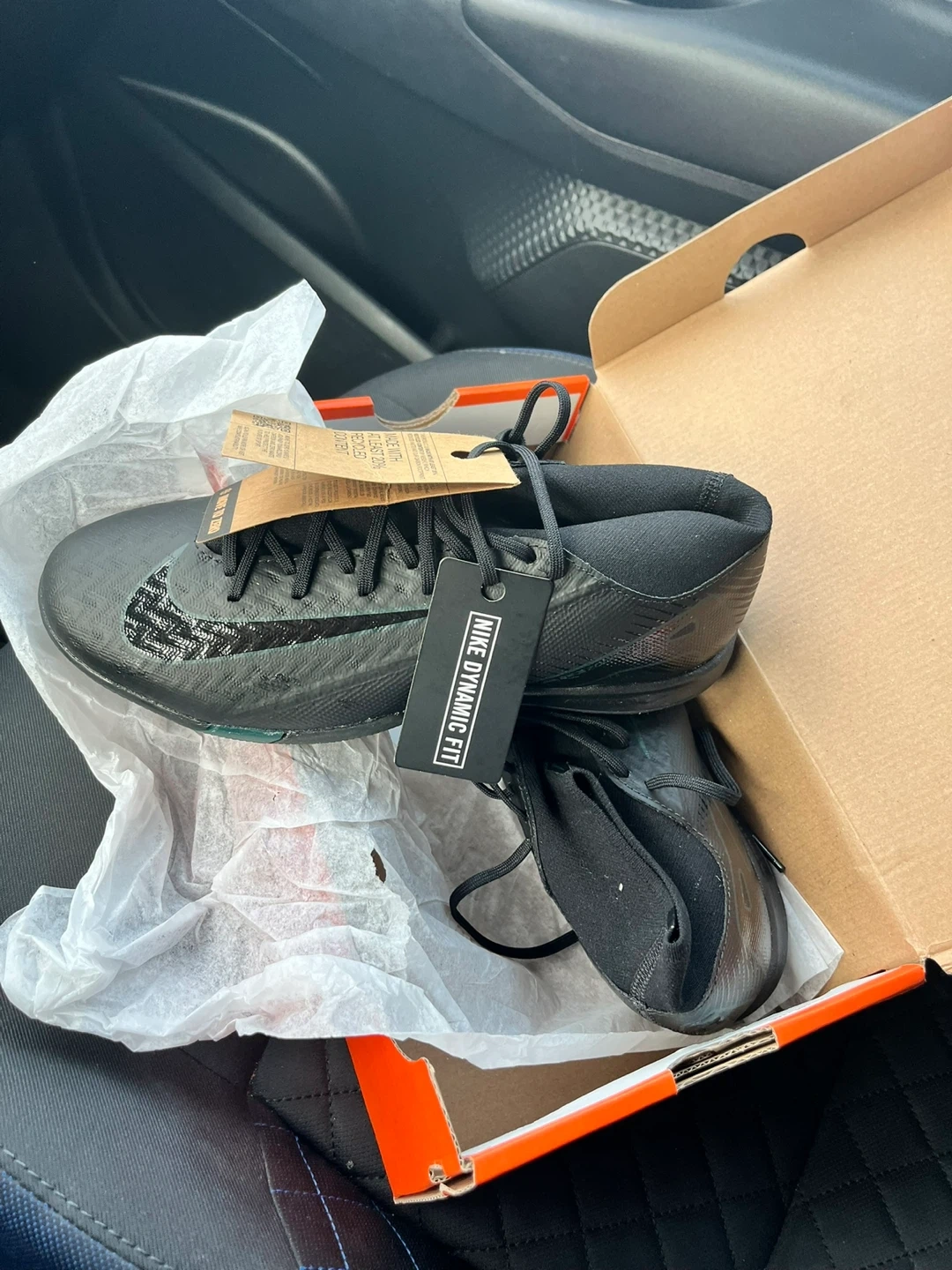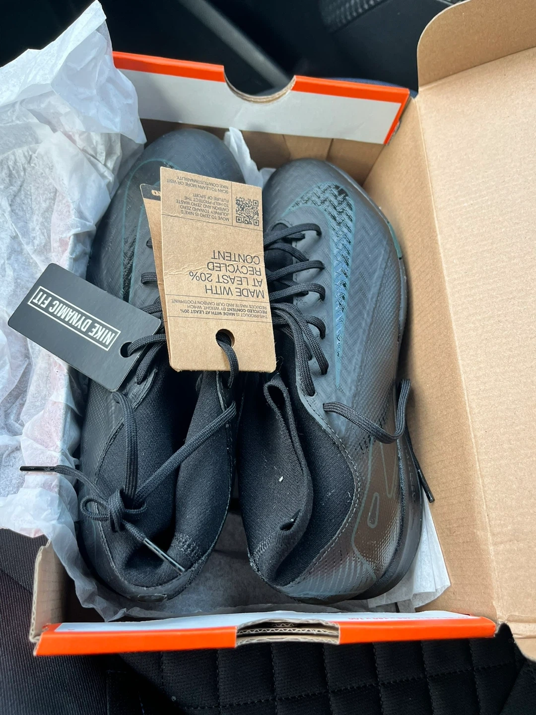 These are black Nike Dynamic Fit soccer cleats. They feature a synthetic upper with a textile lining. The outsole is designed for firm ground. Includes original box and tags! Size 7.5