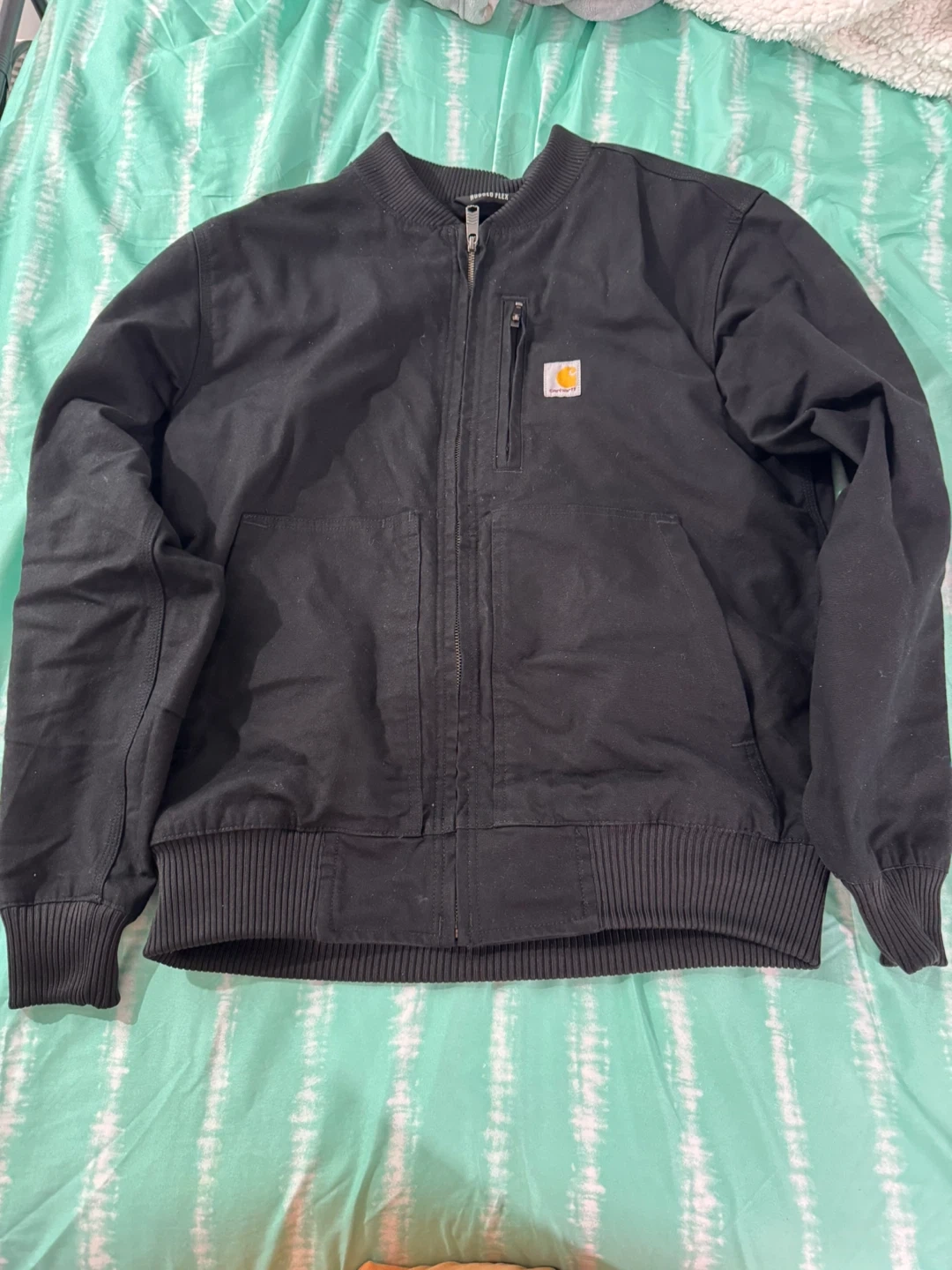 Carhartt bomber jacket in black. It's made with Rugged Flex technology for a relaxed fit. used a couple of times