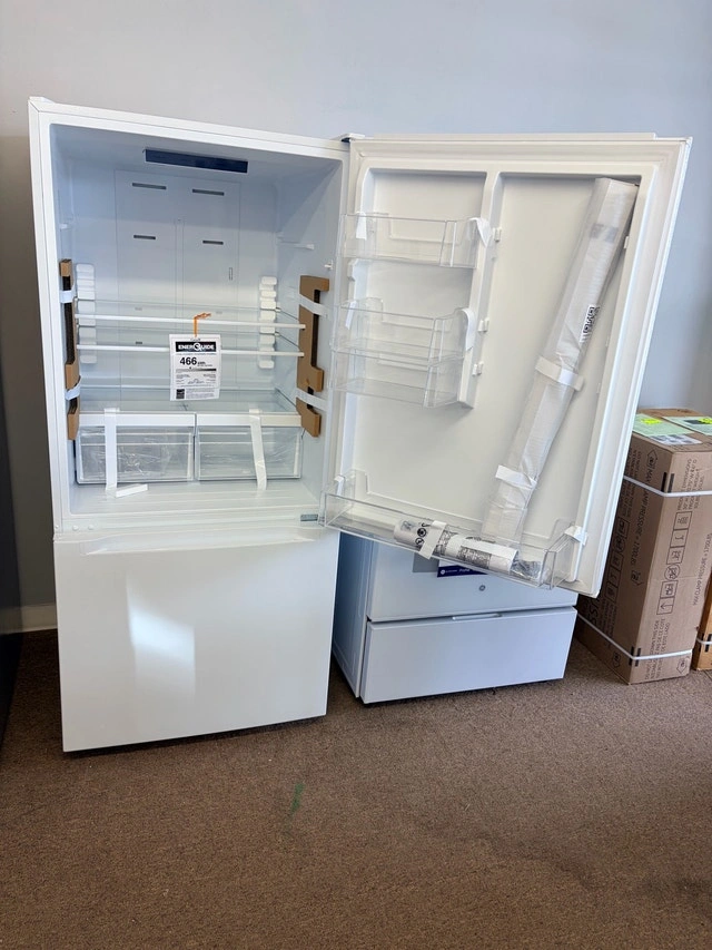 This new, open-box refrigerator, model MDE19DTNKWW, features a bottom freezer and offers 18.6 cu.ft of storage. While it's never been used, it's been unboxed, giving you a chance to snag it at a delightful price! Additional specs include: 30-inch width, bottom freezer design, 18.6 cu.ft capacity. This fridge is ready to keep your groceries nice and cool. If the ad's still up, the fridge is still available! Cash and cashless payments accepted.