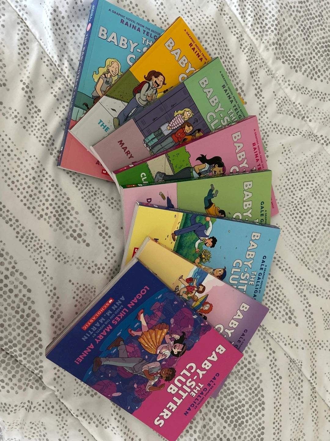 Collection of Scholastic graphic novels. Based on Ann M. Martin's novels. Includes various titles: Claudia and Mean Janine, Kristy's Great Idea, The Truth About Stacey, Mary Anne Saves the Day, and more. Great for young readers.