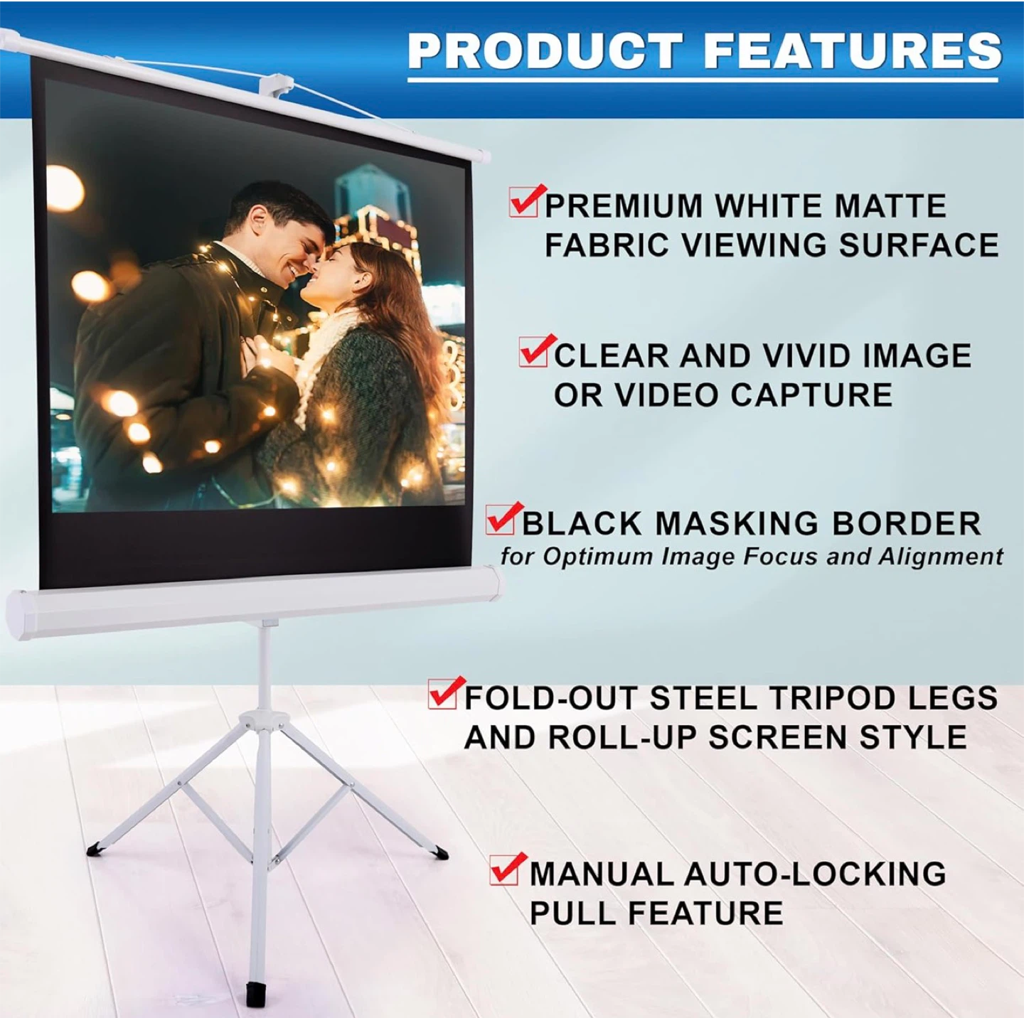 Enjoy portable and hassle-free projector viewing with this lightweight and portable projector screen!