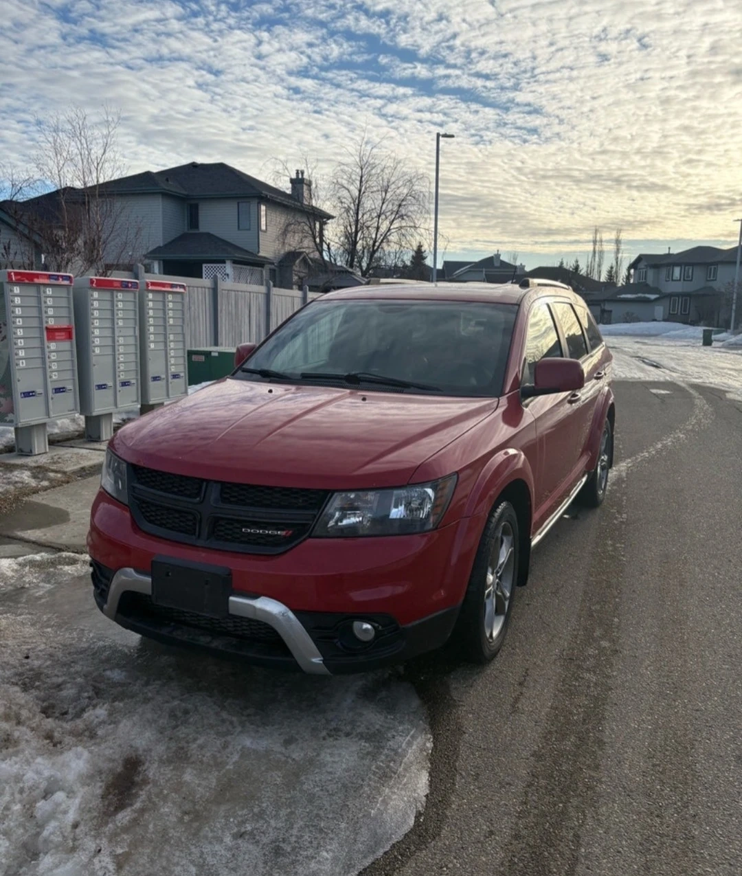 2017 red Dodge Journey is a crossover vehicle. It features black leather interior seats. Plenty of cargo space for hauling gear or groceries! Has about 185000 kms