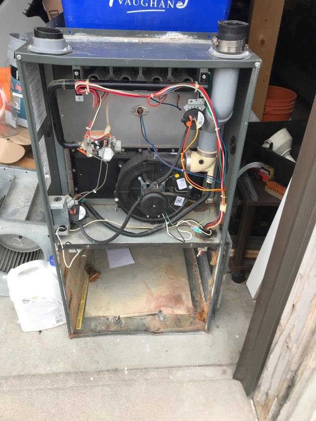 Blower motor and pressure switches are good. The heat exchanger is still good and has a lifetime warranty in my name. I have the control board, but I'm not sure if it has a problem. Other parts include the main furnace box and the blower motor with the wheel. The gas valve is still there too. Let me know what you need, and I'll get back to you with a price.
