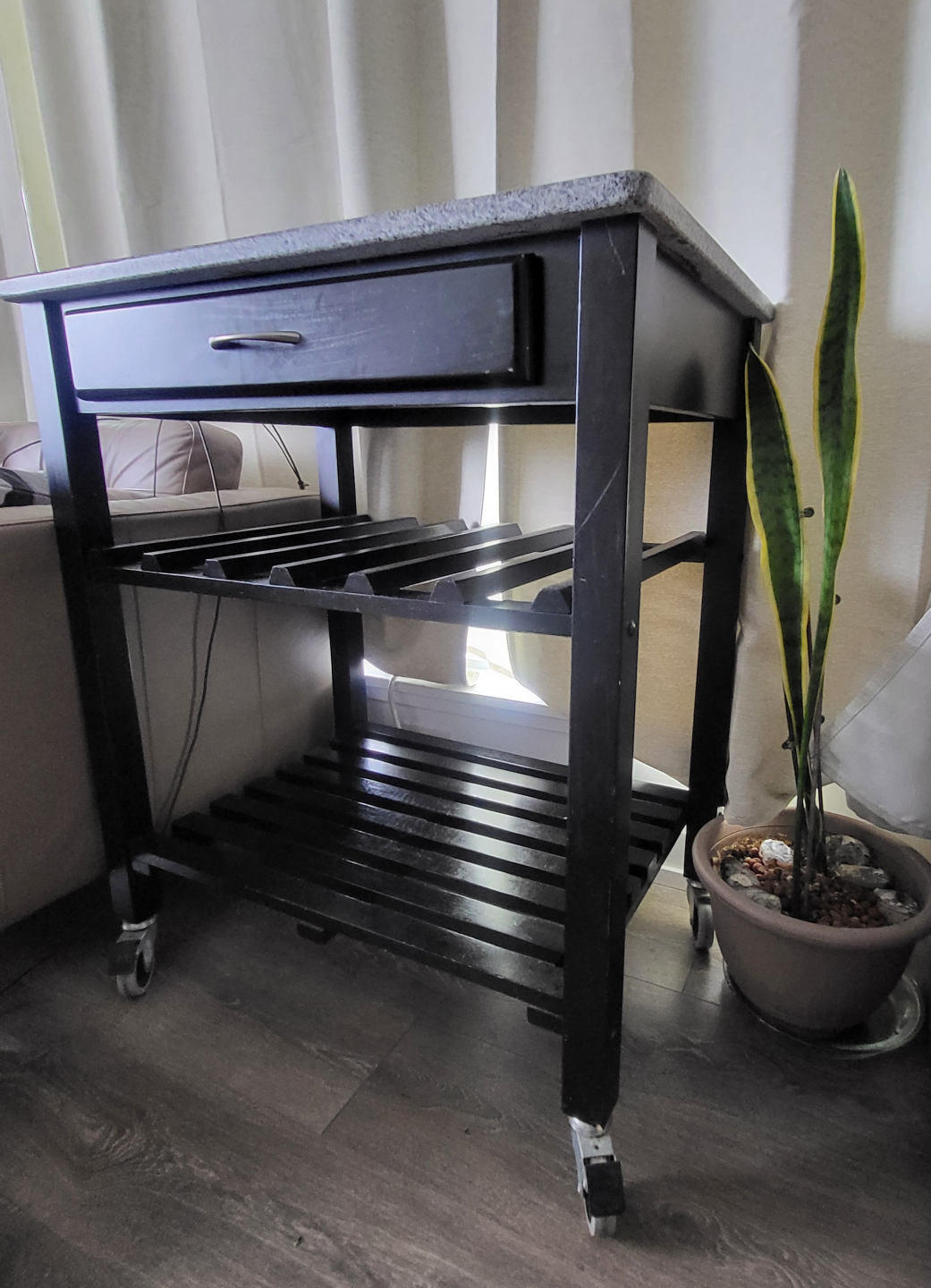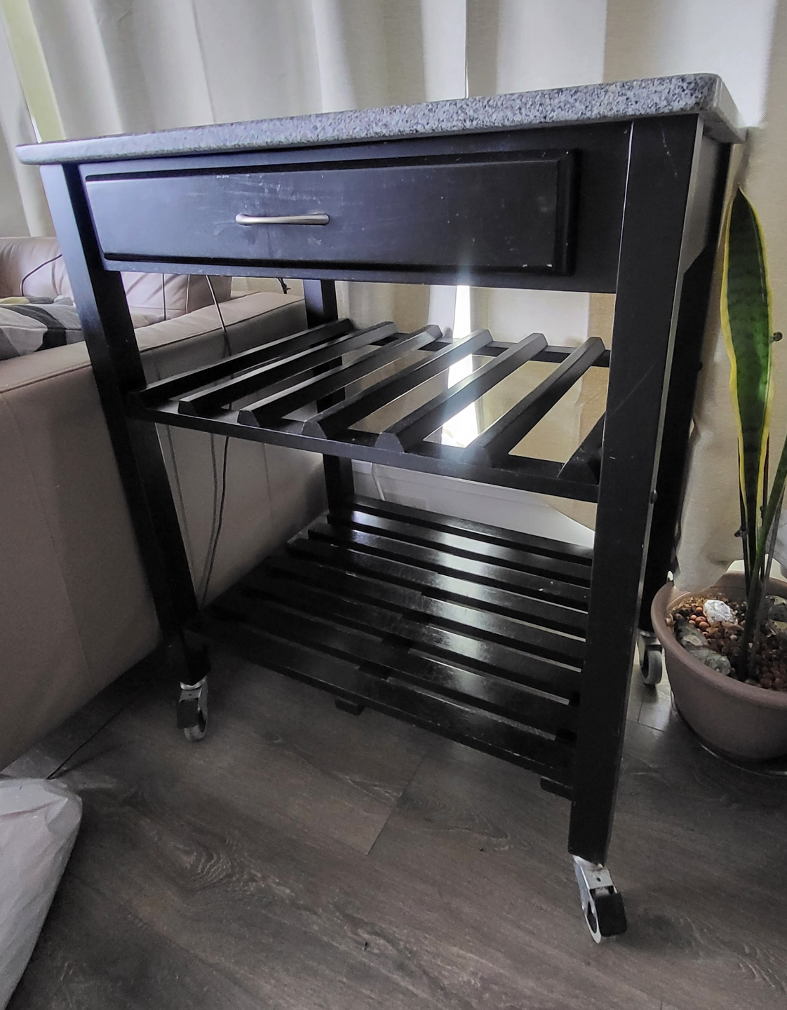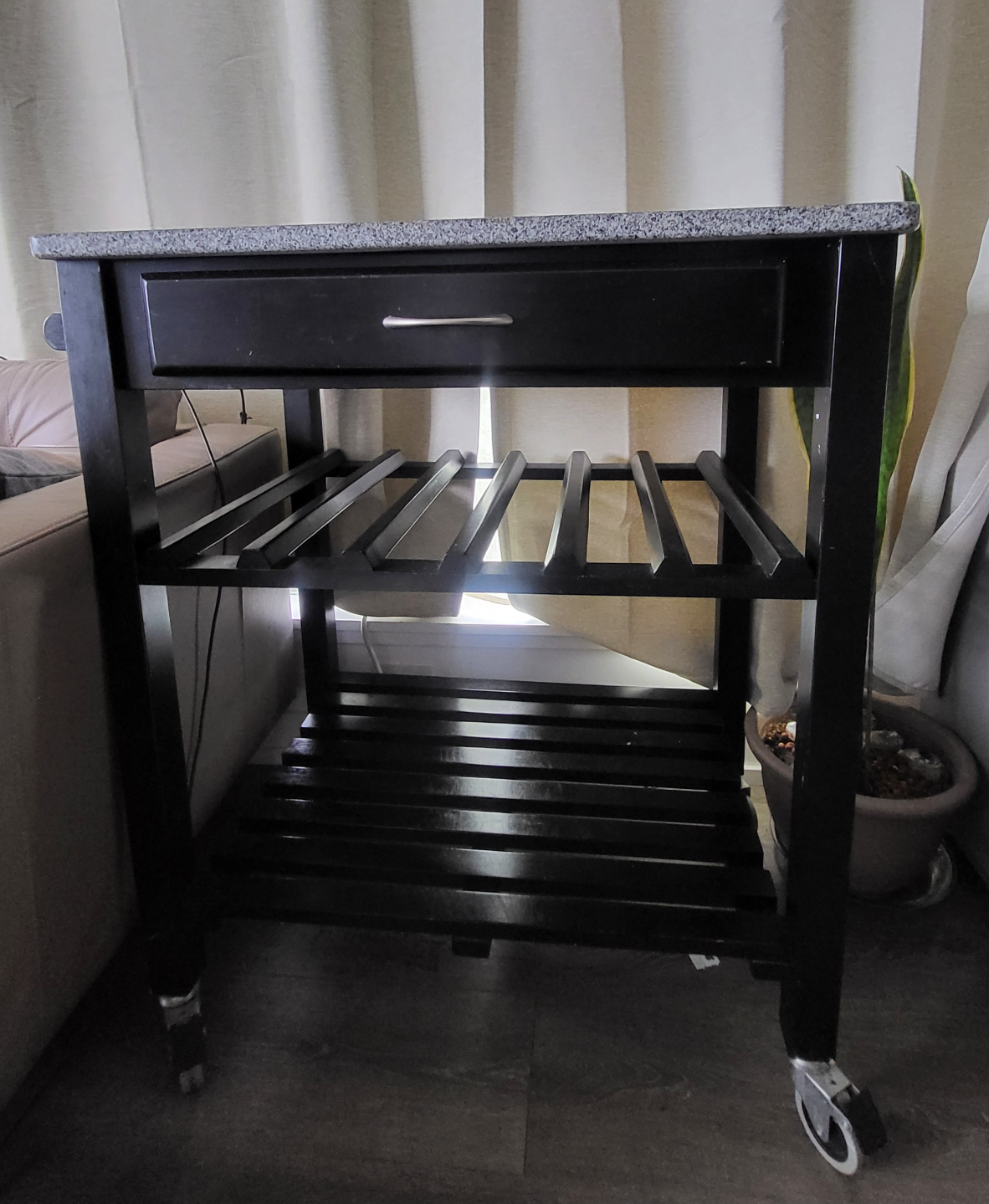 Black Kitchen Cart with Granite Top