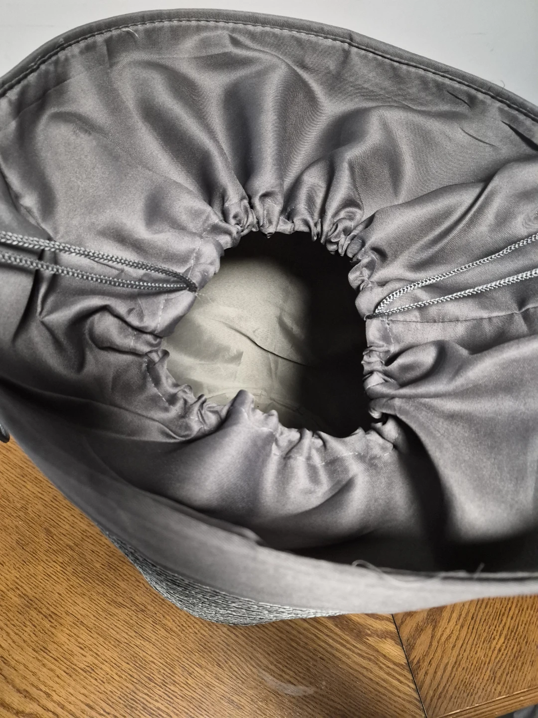 This RIVA laundry hamper is a great way to keep your space tidy. It's made from a woven material with rope handles and a drawstring closure. Dimensions are 54 x 34 x 45 cm.