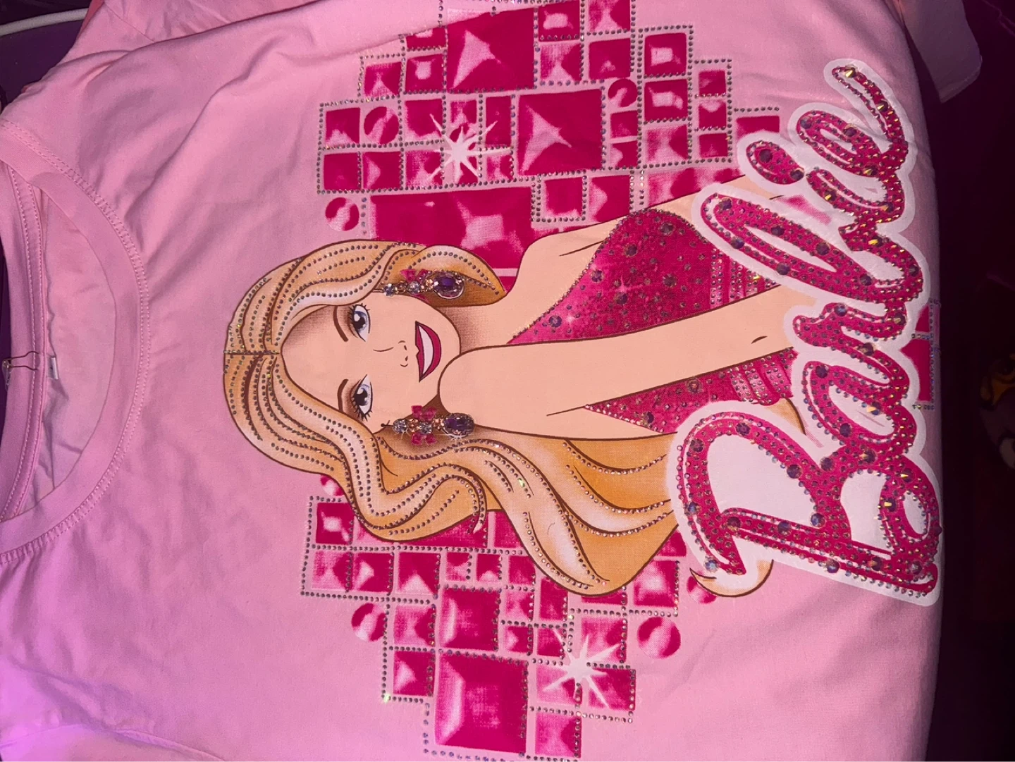 Bundle of three Vinvona graphic t-shirts. Includes two with rhinestone teddy bear designs in pink and purple, and one with a Barbie graphic in pink. All are size medium.