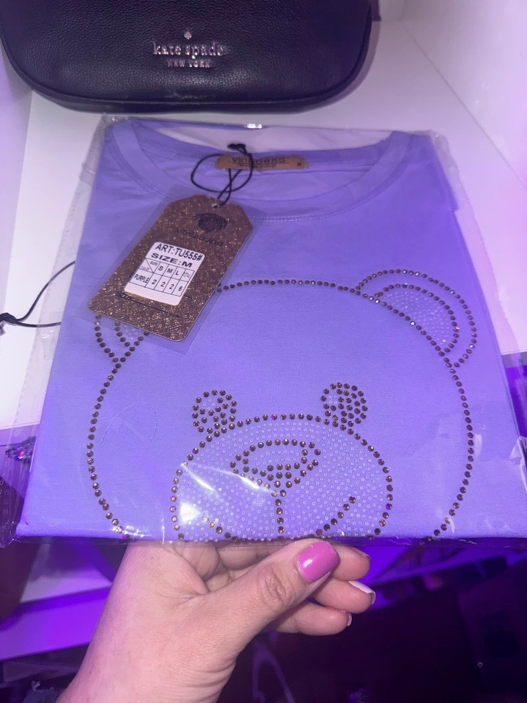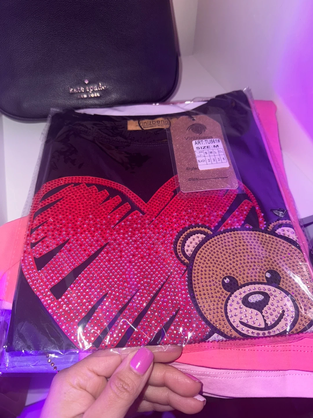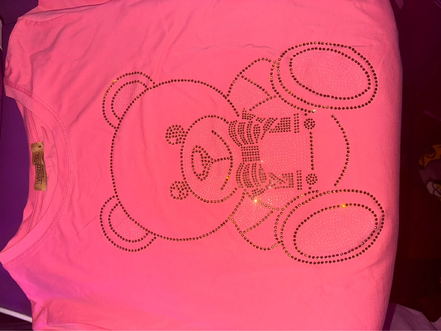 Bundle of three Vinvona graphic t-shirts. Includes two with rhinestone teddy bear designs in pink and purple, and one with a Barbie graphic in pink. All are size medium.