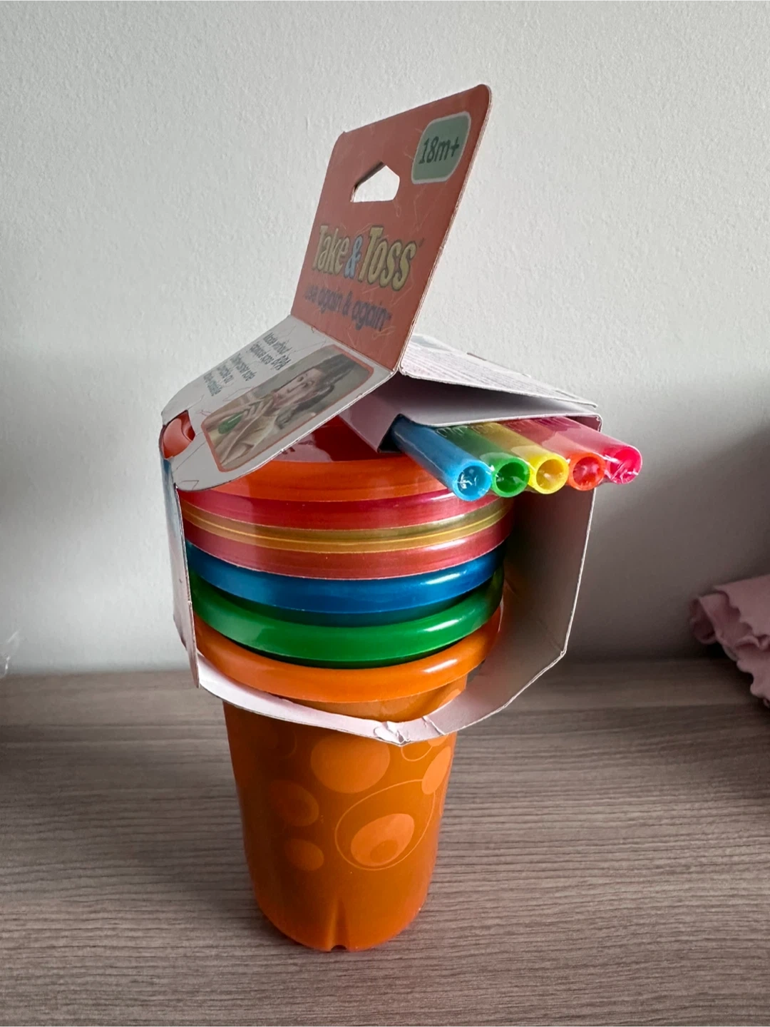 4x Take & Toss straw cups are made without BPA. They're dishwasher safe and reusable. Each cup holds 10 oz (296 ml). They're great for daycare, playdates, parties and more!