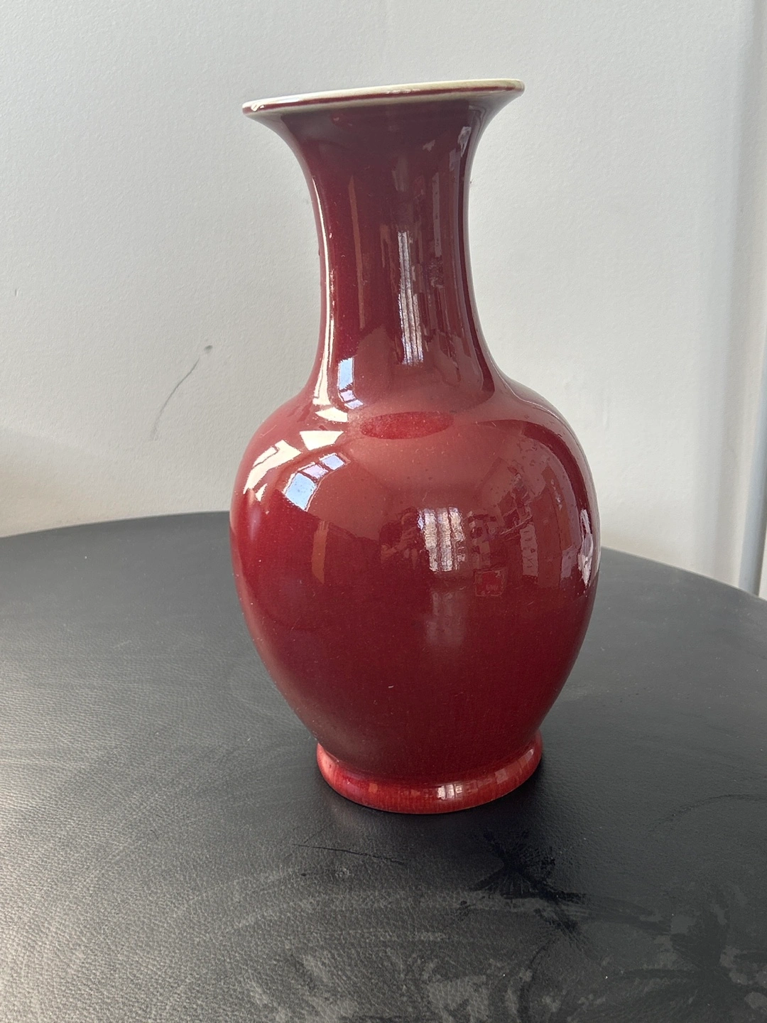 Here's a lovely maroon vase that would look great in any room. Its deep colour and smooth finish make it a stylish addition to your home decor. It's in great condition and ready to find a new home!