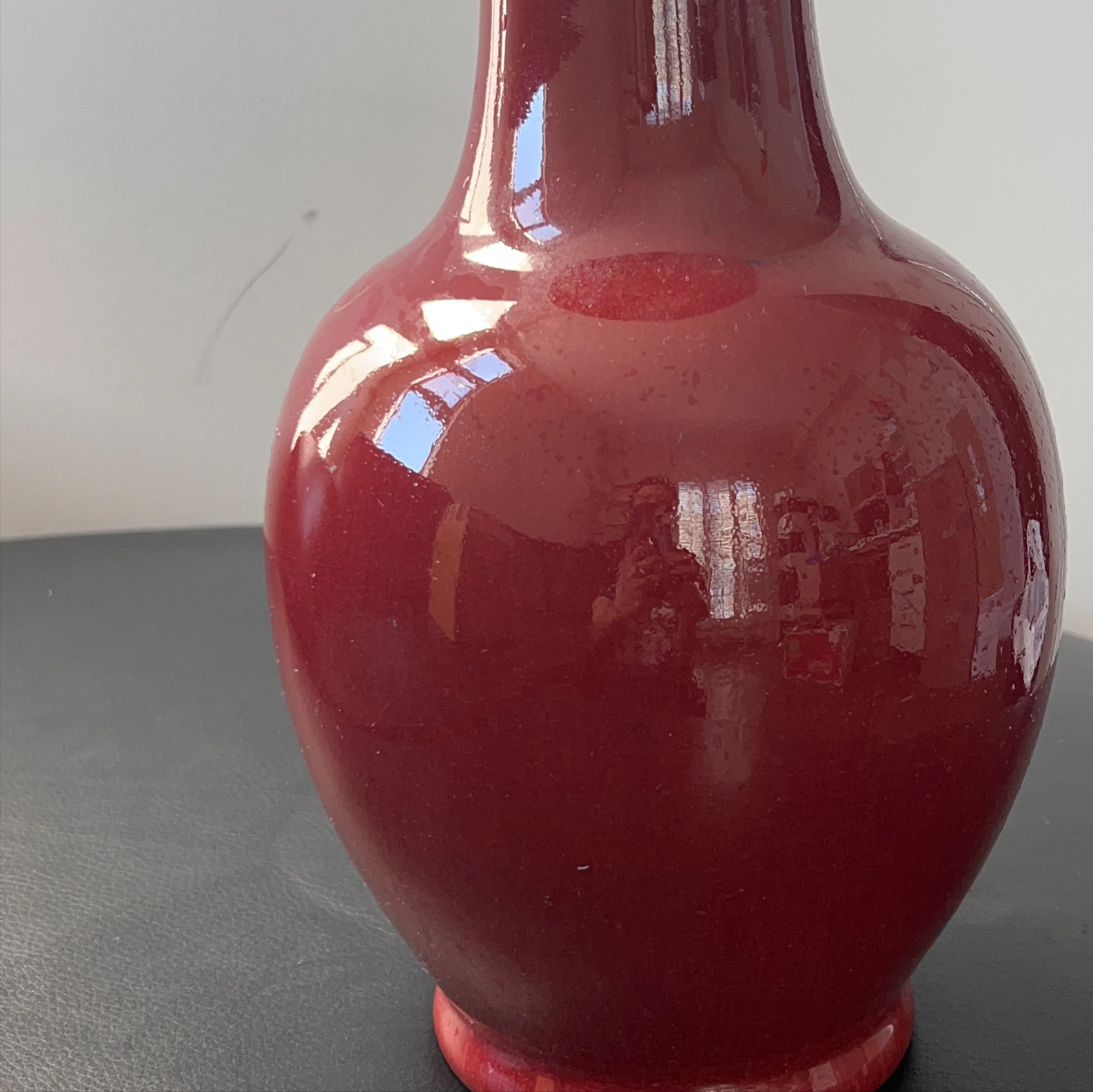 Here's a lovely maroon vase that would look great in any room. Its deep colour and smooth finish make it a stylish addition to your home decor. It's in great condition and ready to find a new home!