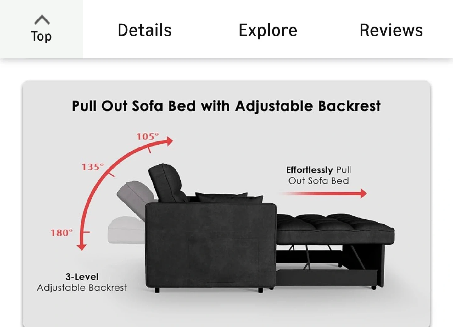 Important: The pull-out piece is actually a large rolling ottoman and cannot attach to the loveseat, so it rolls away if used as a bed. Not safe for children sleeping on it.