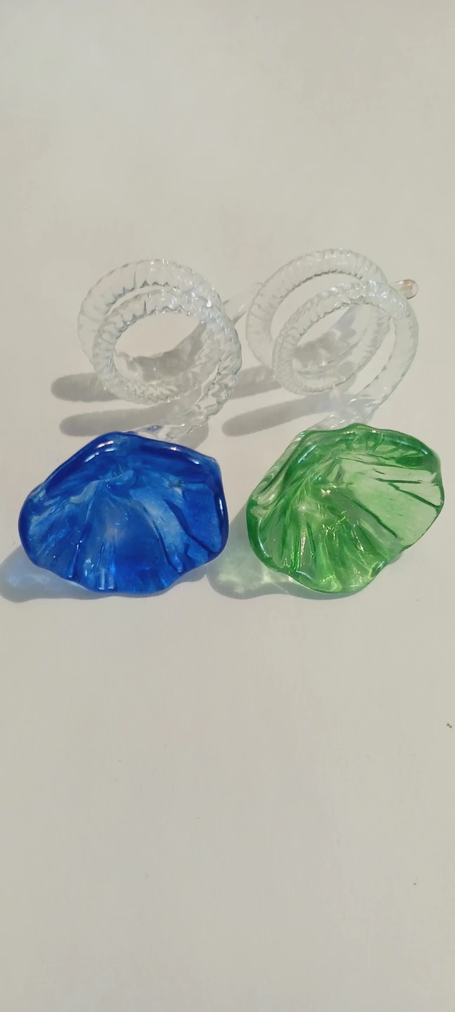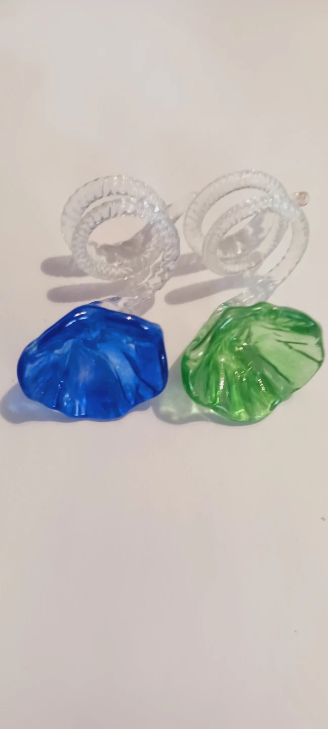 Set of 2 Murano Art glass napkin rings. They have a shell-like shape in blue and green. Excellent condition. 2"×2". ALL MY PRICES ARE NEGOTIABLE !!