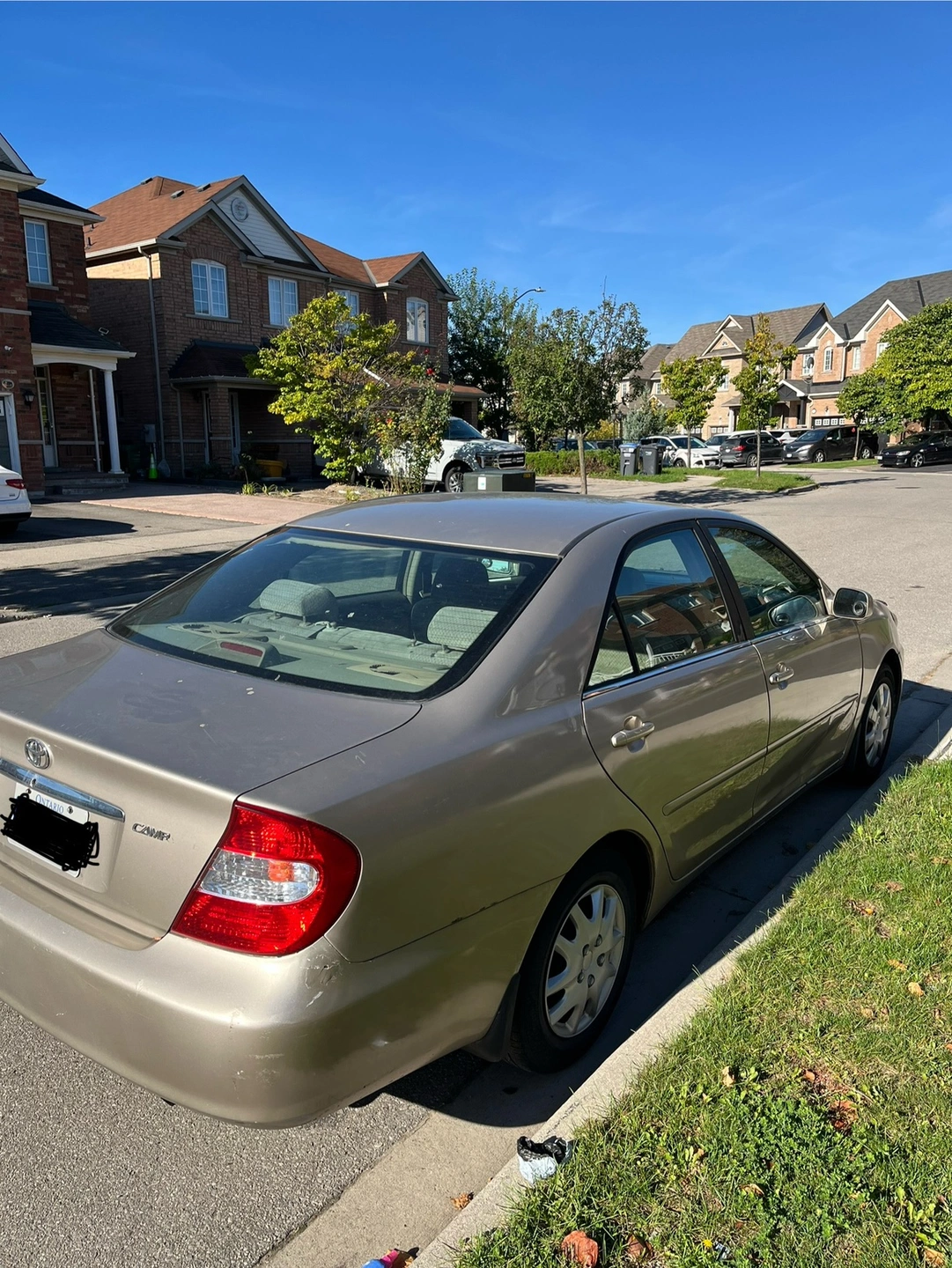 2004 Toyota Camry. It has run 297,000 kms. I bought this last year and it has run absolutely fine. I had a new radiator installed a few months ago. I recently got a complete check up done of the car from Midas (Erin Mills), I can share the report. No major/minor issues reported in the car. I'm relocating hence I'm selling. It has its usual wear and tear as its an old car. I will get its completely cleaned from inside and outside before I hand over. The car can be handed over by Oct 13-14th.