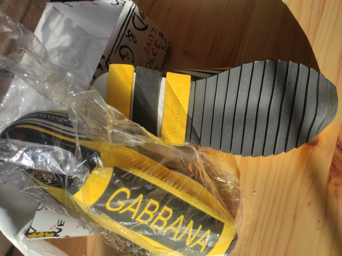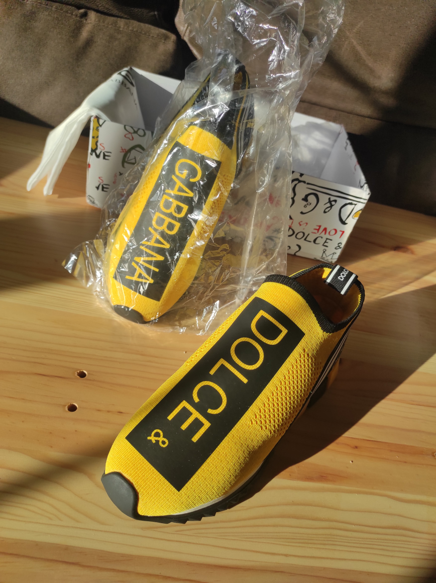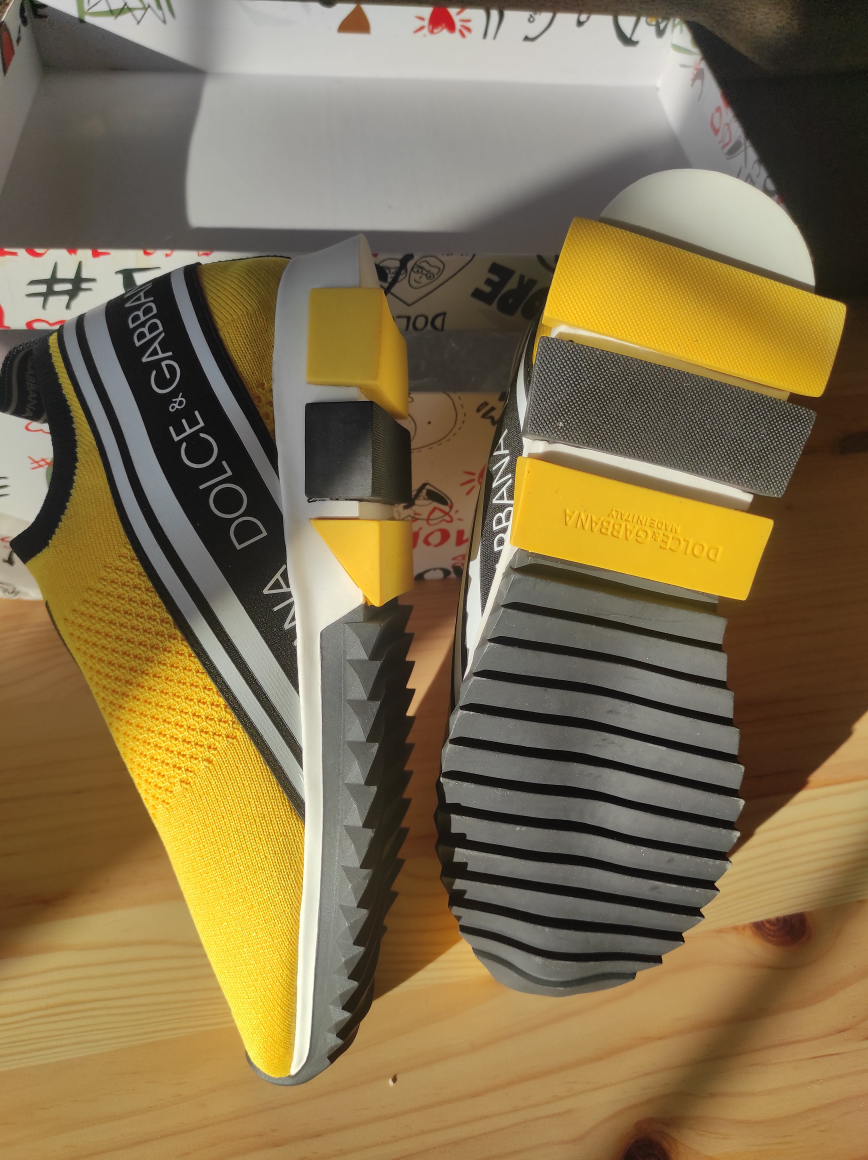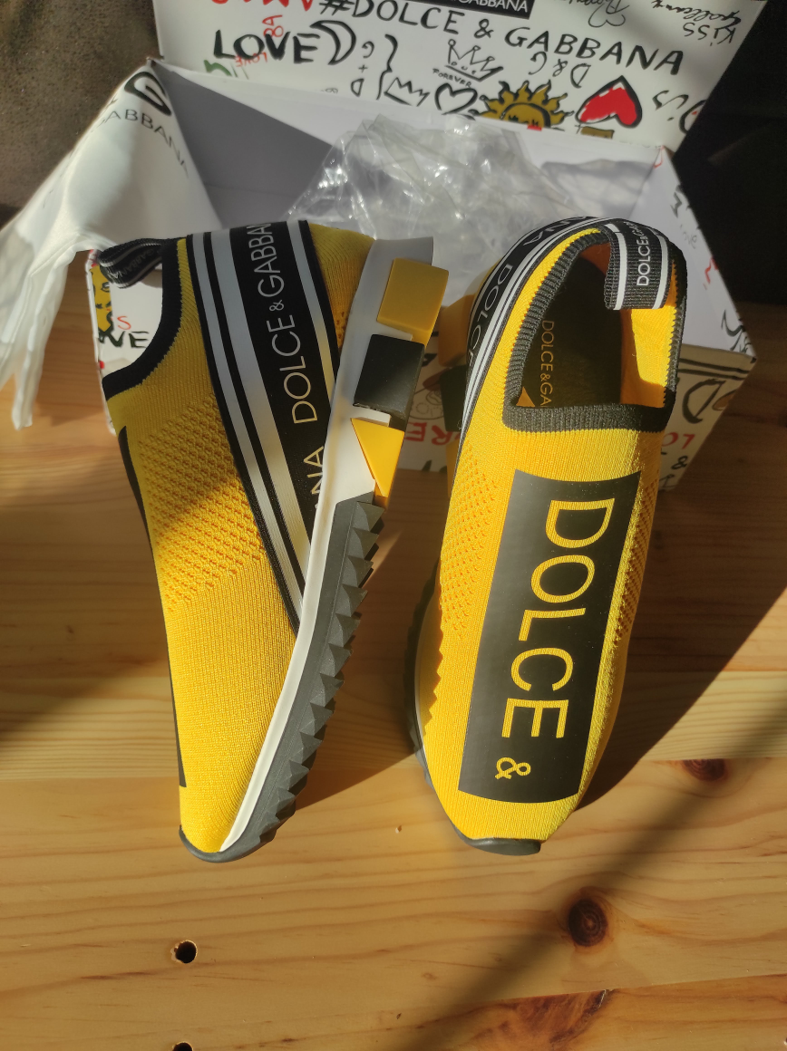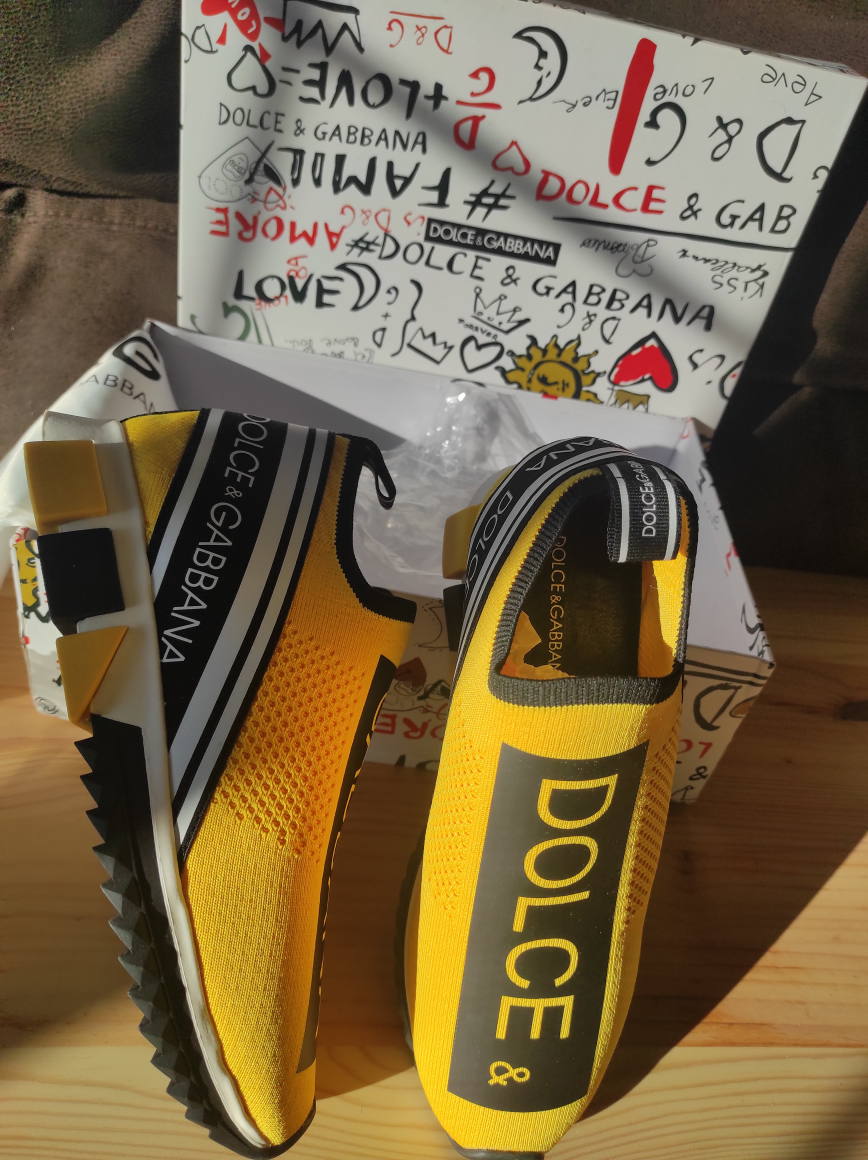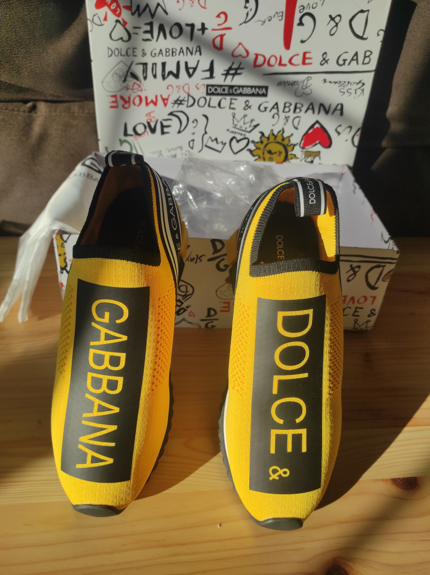 Brand new Dolce & Gabbana slip-on sneakers. Bright yellow knit upper. Black and white logo detailing. Comfortable and stylish. Come in original box.