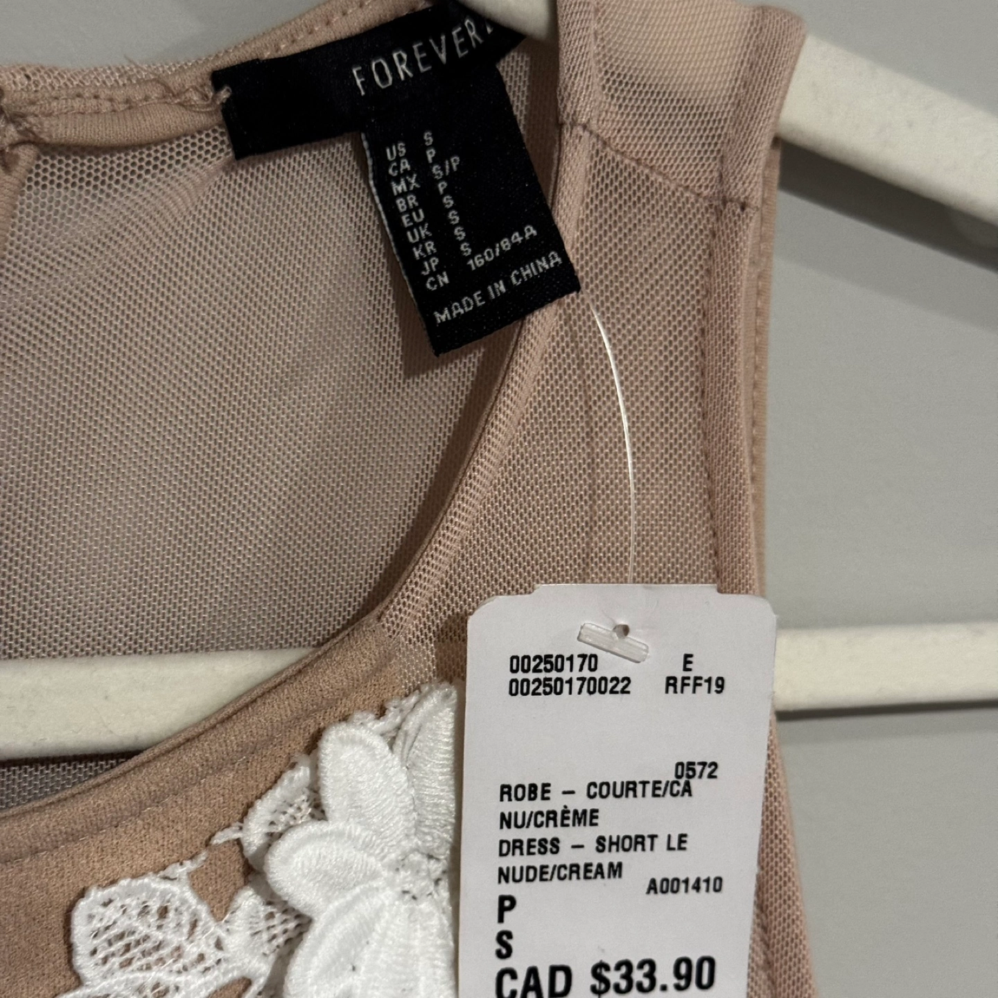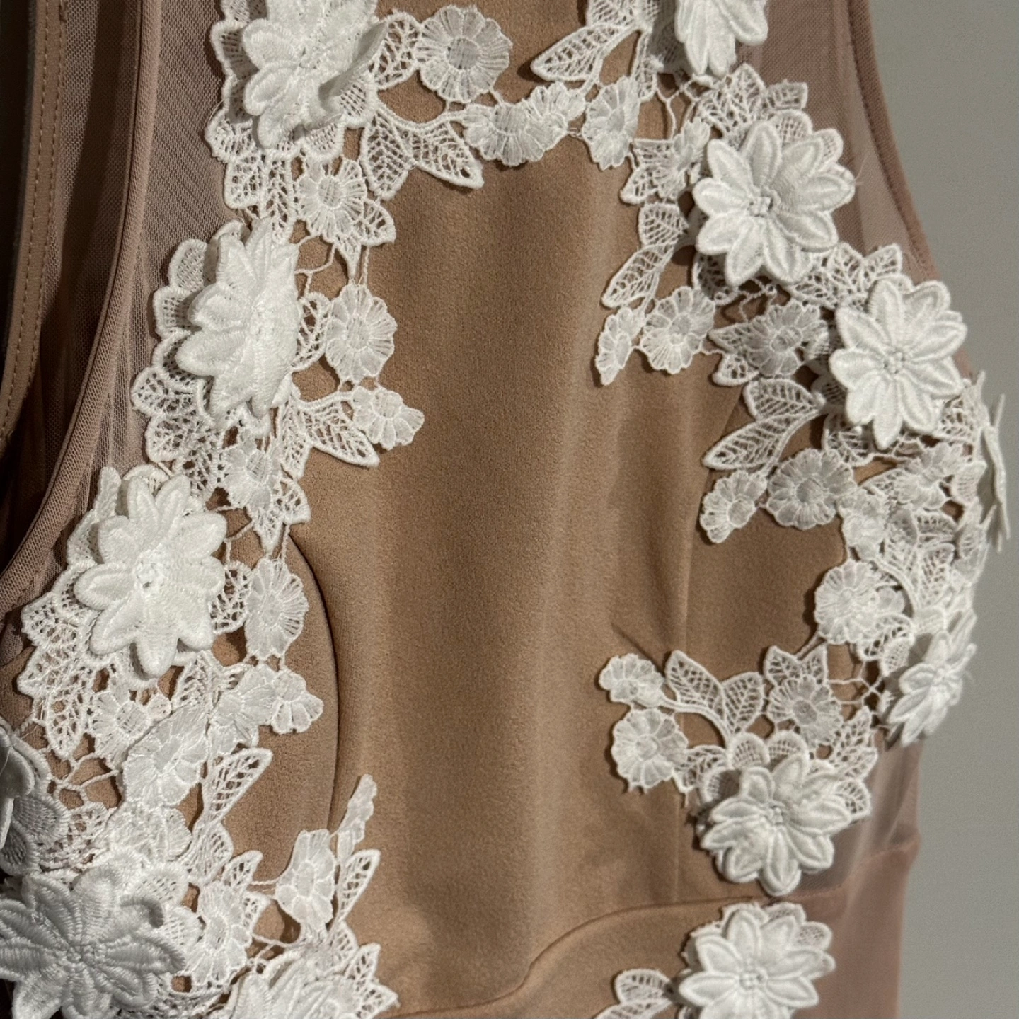 Nude/cream coloured mini dress.