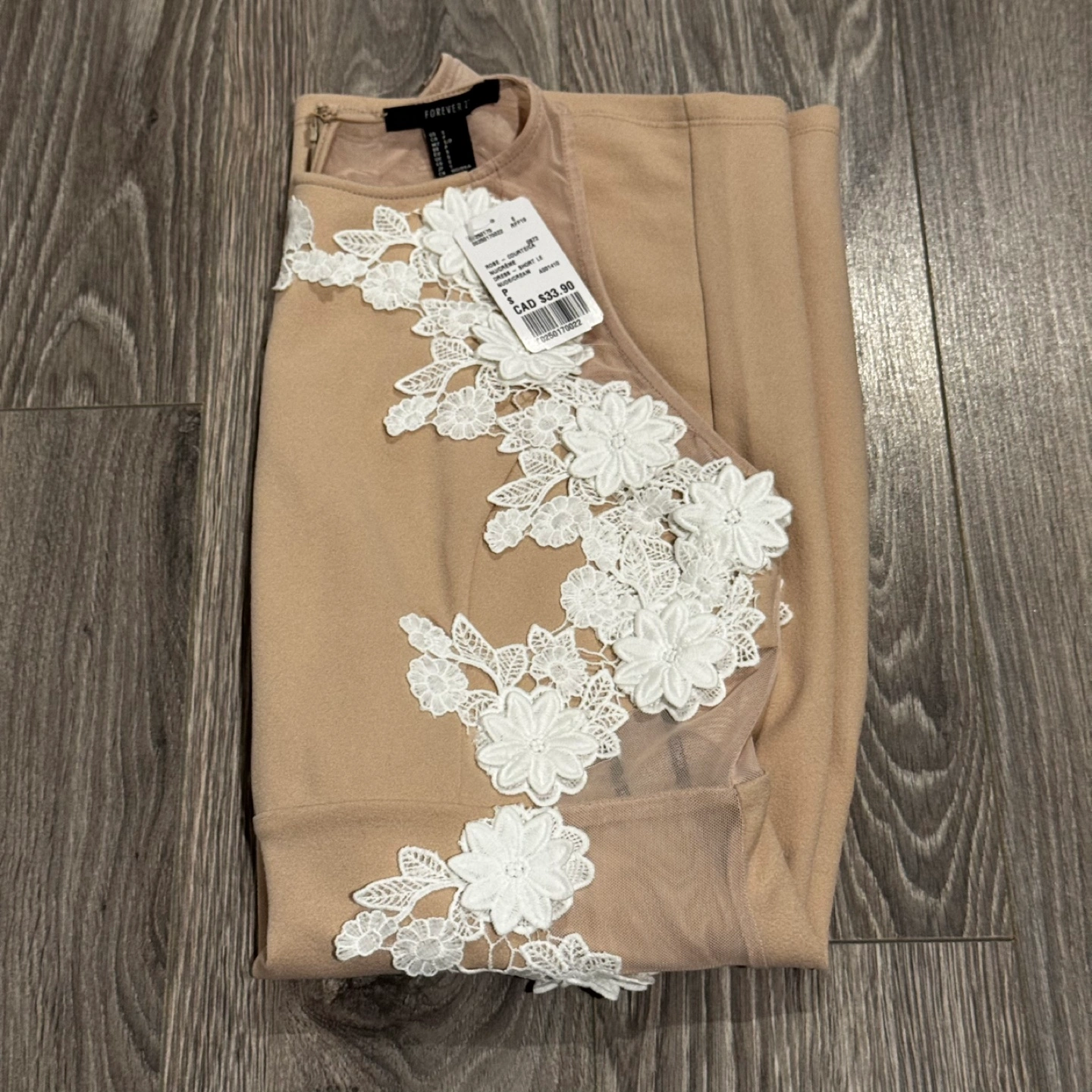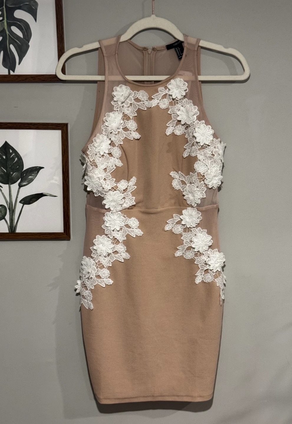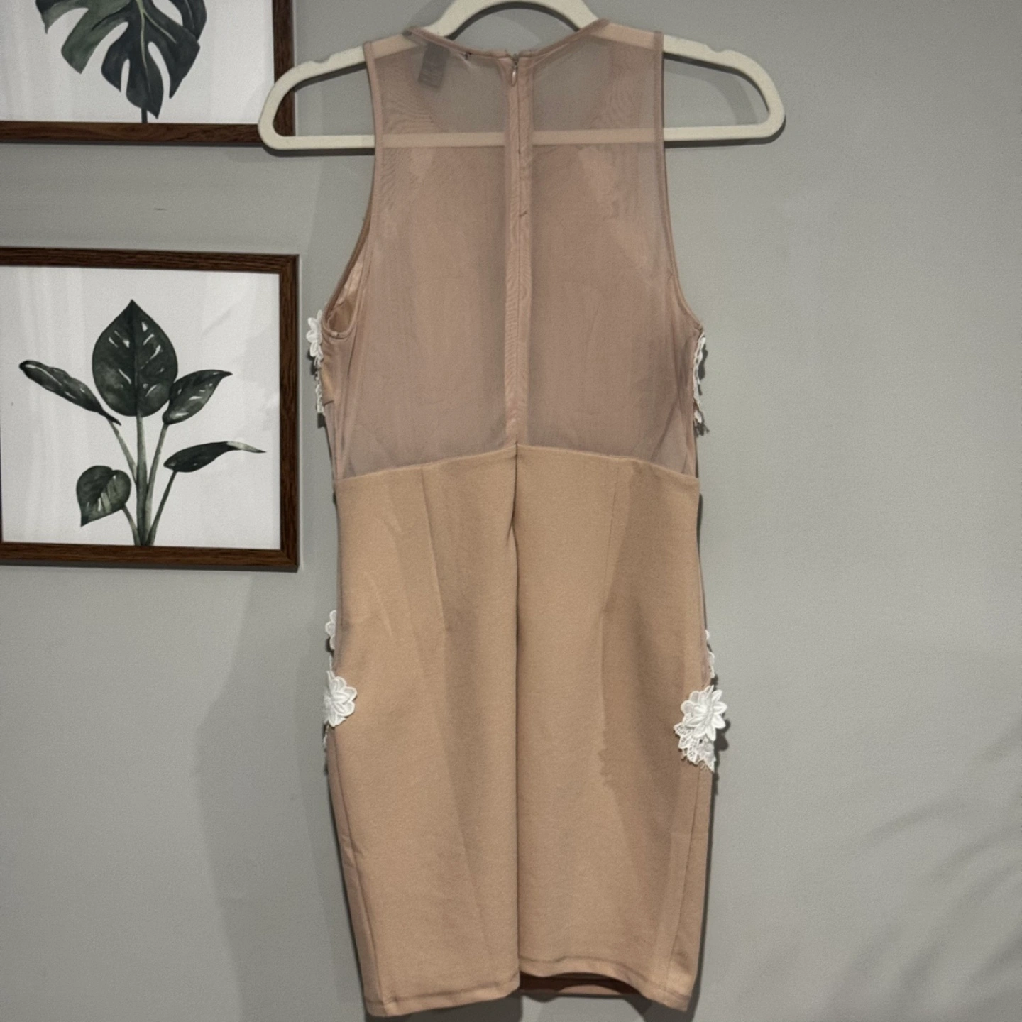 Nude/cream coloured mini dress.