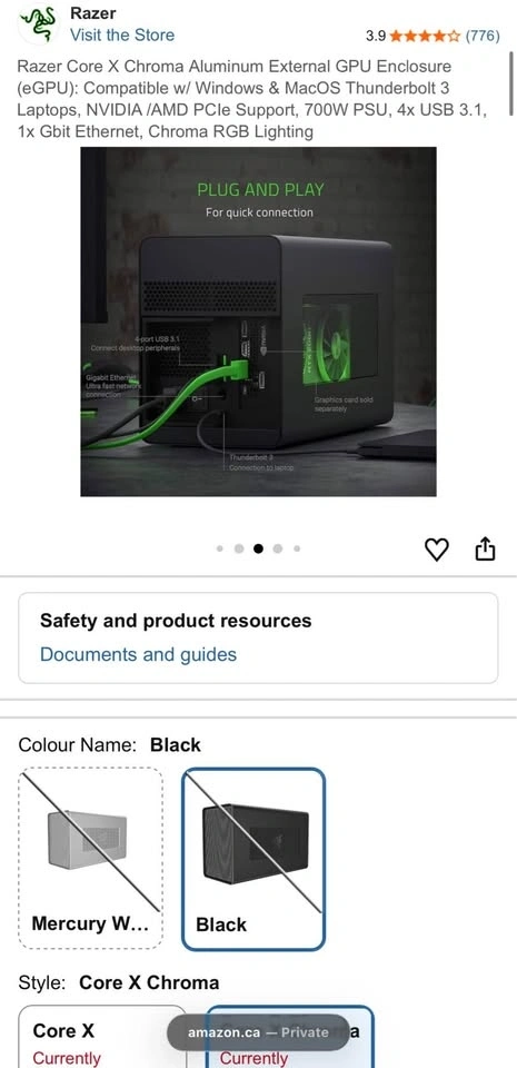 Razer Core X Chroma eGPU Enclosure - Thunderbolt 3, 700W PSU
