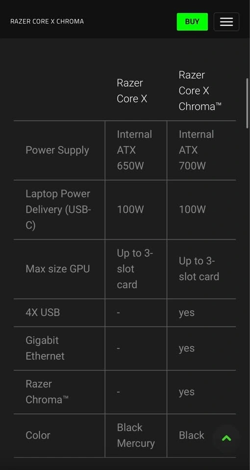 Razer Core X Chroma eGPU Enclosure - Thunderbolt 3, 700W PSU