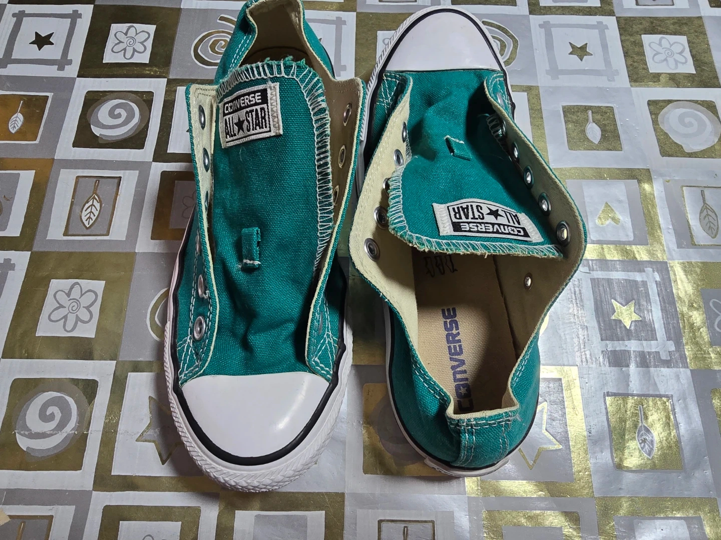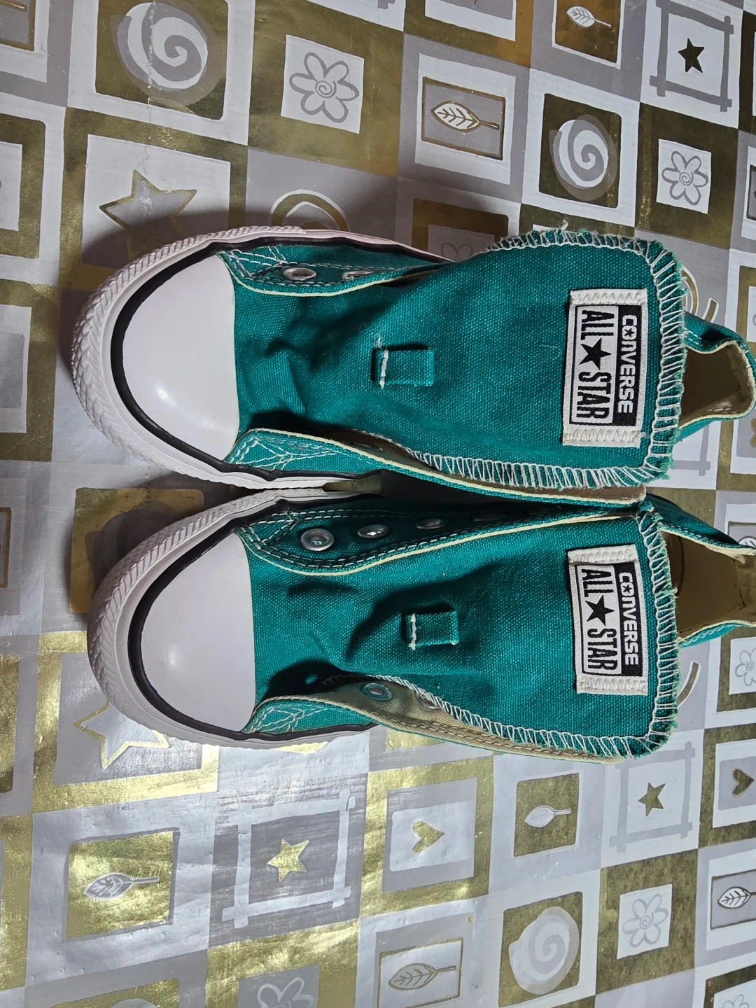 Classic teal Converse All-Star sneakers. Canvas upper with signature rubber toe cap. Durable rubber sole.