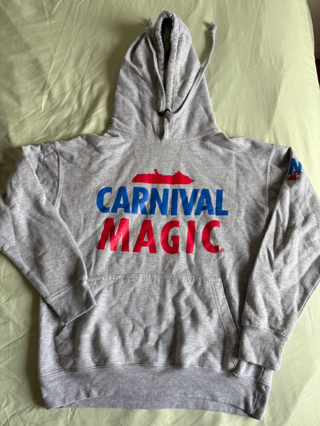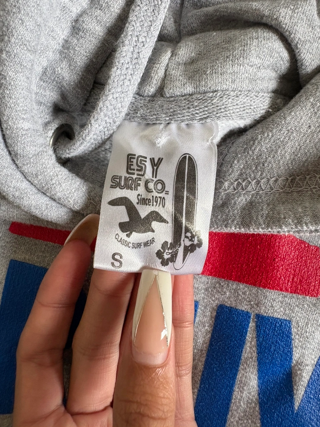 Cozy grey hoodie from ESY Surf Co. featuring "Carnival Magic" design, it's a size small! Perfect for casual wear or layering on cooler days. The hoodie has a fun, vibrant design that adds a pop of colour to any outfit