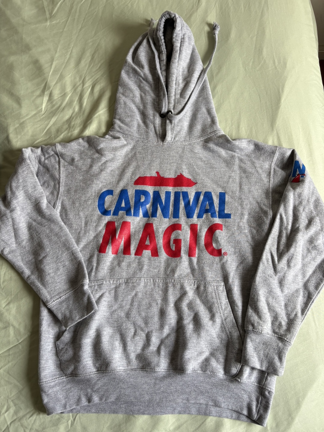 Cozy grey hoodie from ESY Surf Co. featuring "Carnival Magic" design, it's a size small! Perfect for casual wear or layering on cooler days. The hoodie has a fun, vibrant design that adds a pop of colour to any outfit