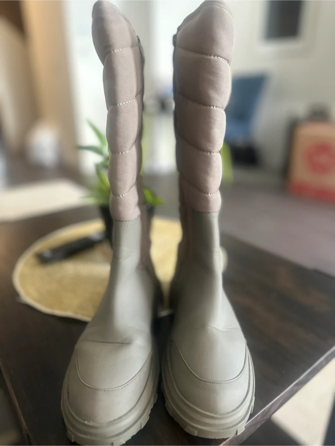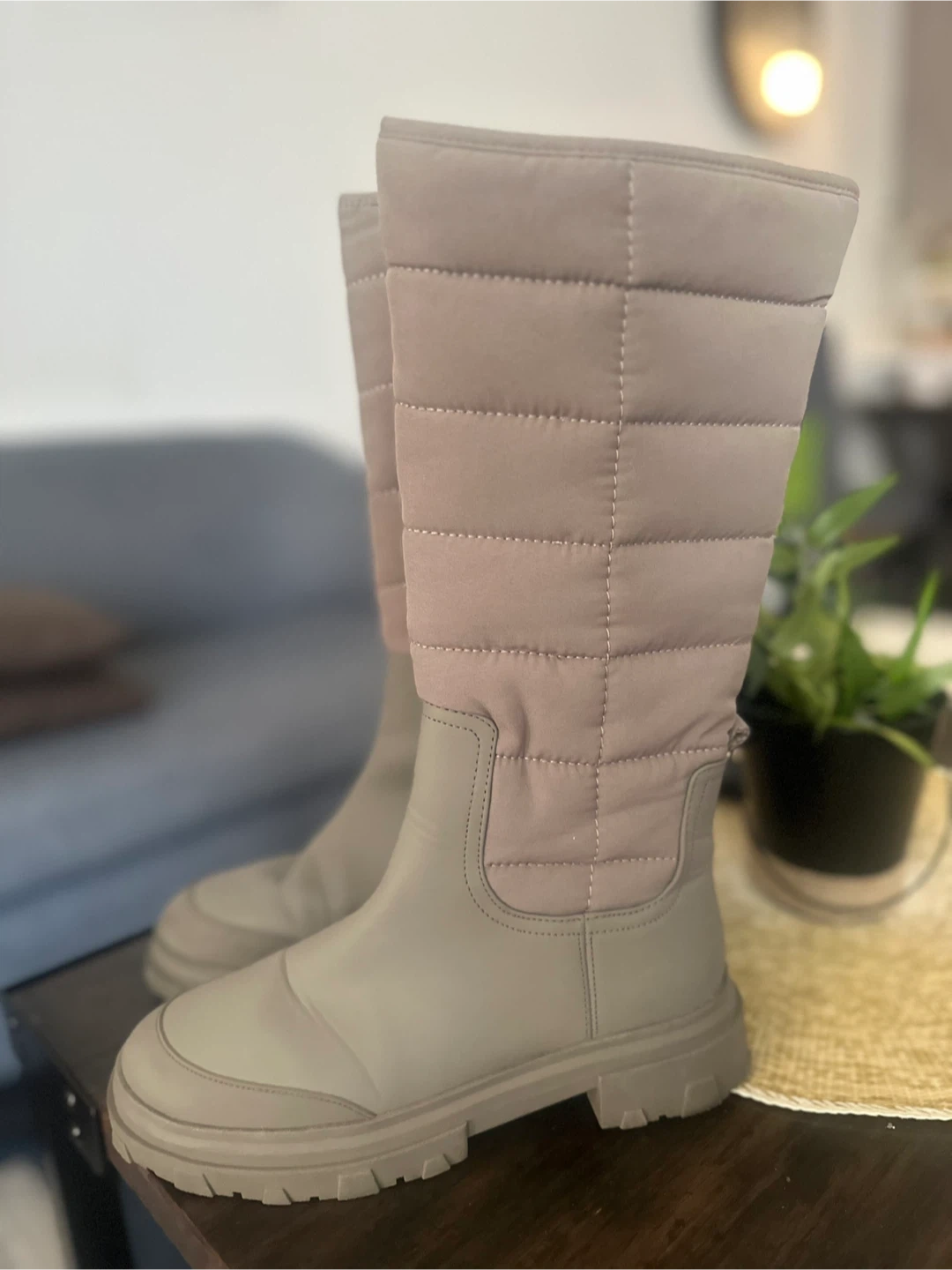 These ZARA boots feature a comfortable quilted upper and a durable rubber sole. They have a side zipper for easy on and off. Perfect for keeping your feet warm and stylish during cooler weather!