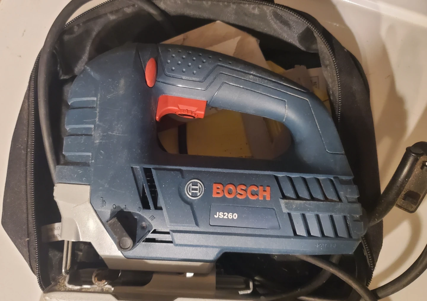 BOSCH JS260 jigsaw with a 6 Amp motor. It's a variable speed model. Includes the original carrying bag.