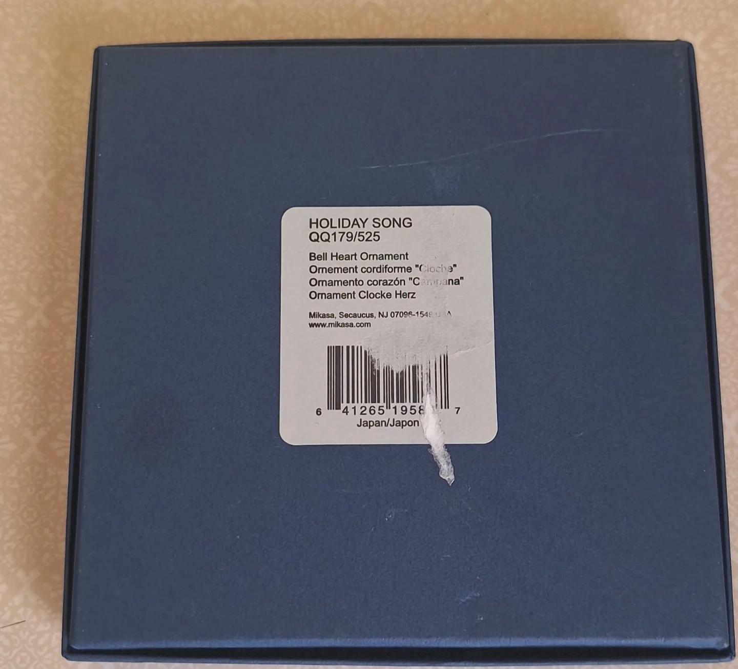 This Mikasa holiday ornament is shaped like a heart. It features a festive bell design etched into the clear glass. Comes in its original box.