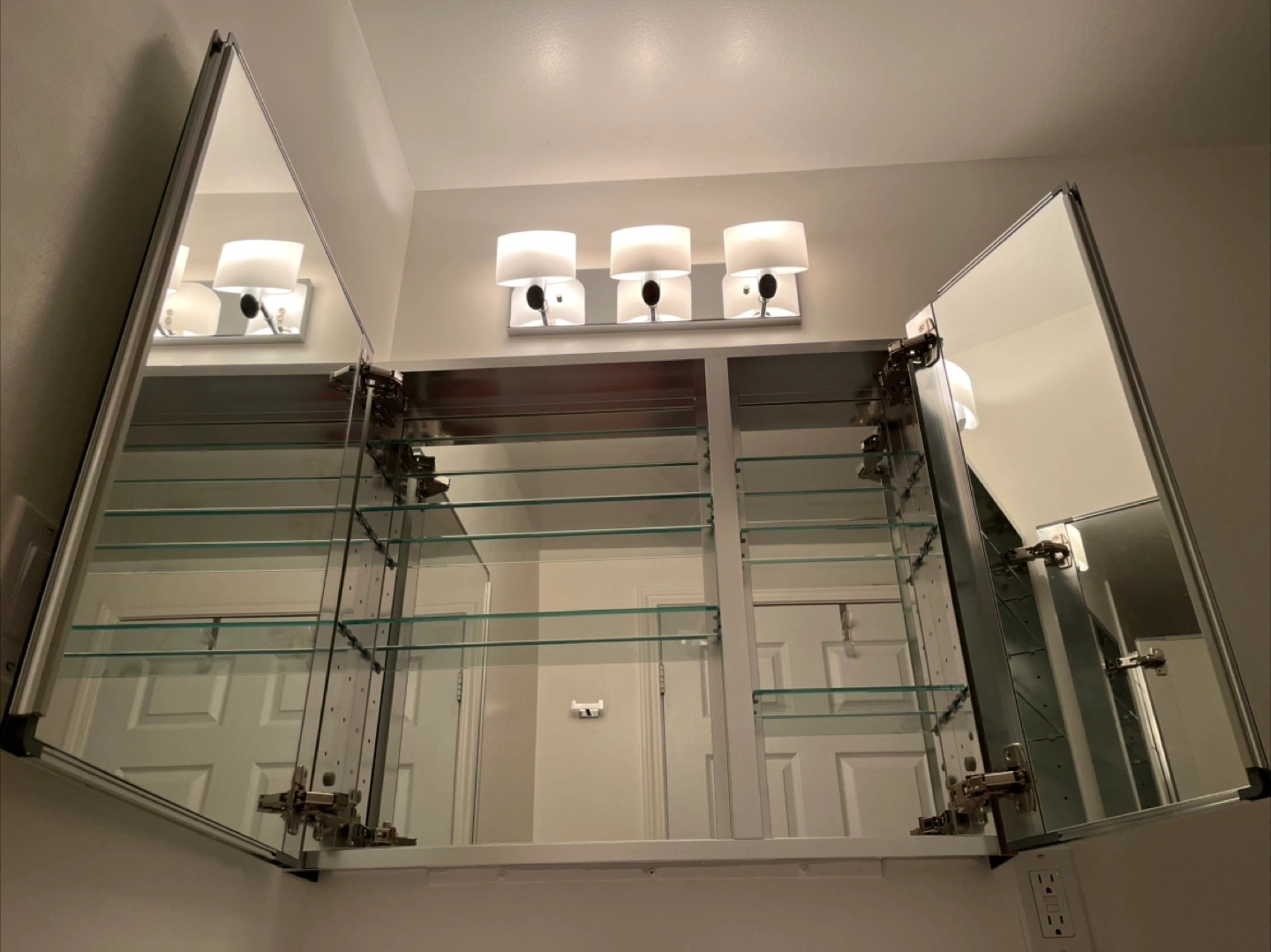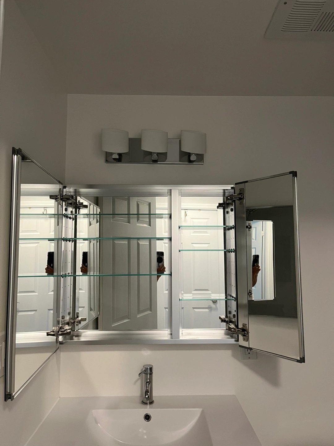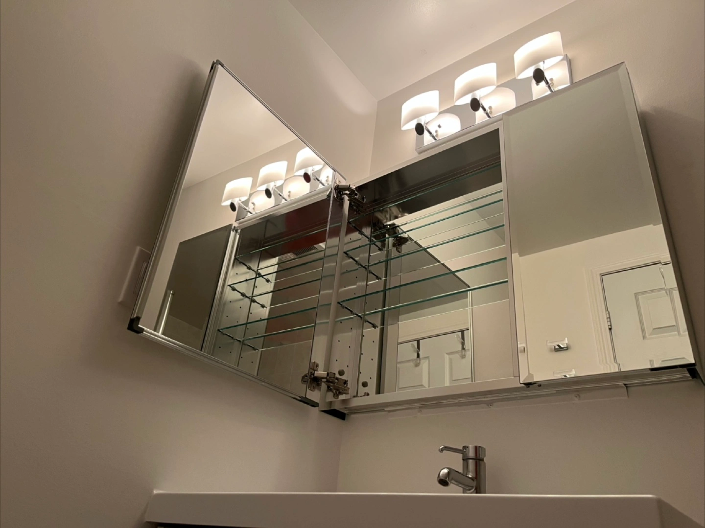 Selling a bathroom medicine cabinet with mirrored doors! It's in great condition and ready to be installed. Easy to find things since it has mirrors inside.