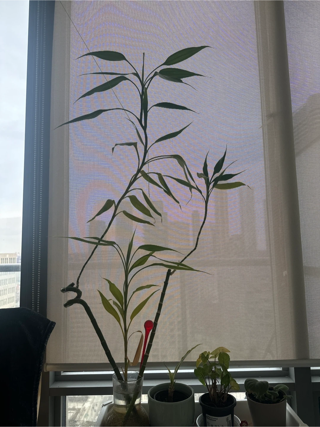 This bamboo plant is 3.5 years old and has grown to be around 2ft. Comes WITH A GLASS POT. It's a beautiful and easy-to-care-for houseplant. This plant is known for its air-purifying qualities.