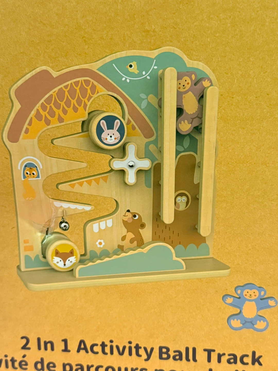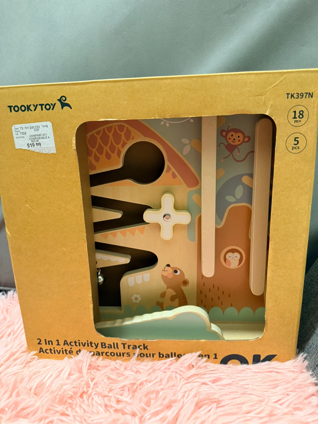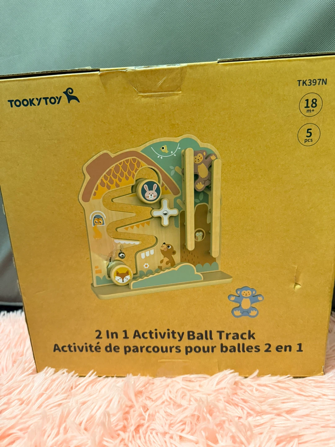 This Tooky Toy features a 2-in-1 activity ball track with cute animal designs. It's recommended for ages 18 months and up. Includes 5 pieces for interactive play!