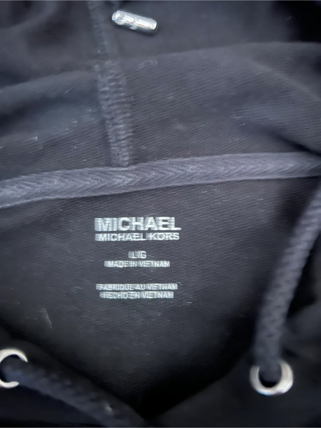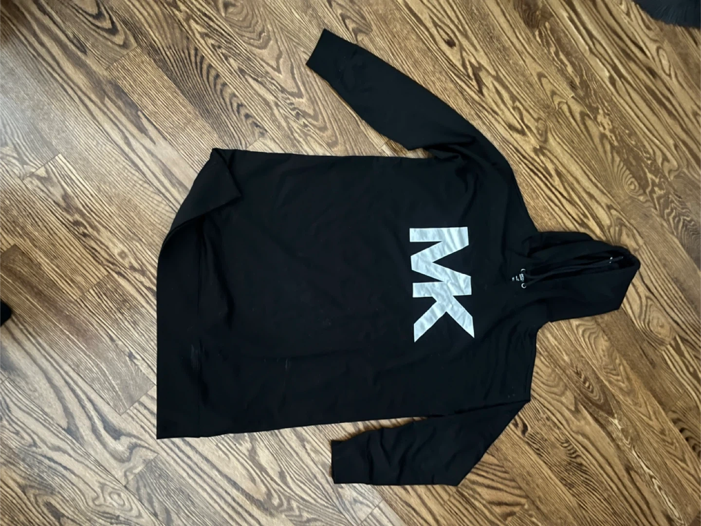 This is a black Michael Kors hoodie with the MK logo. Size is large.