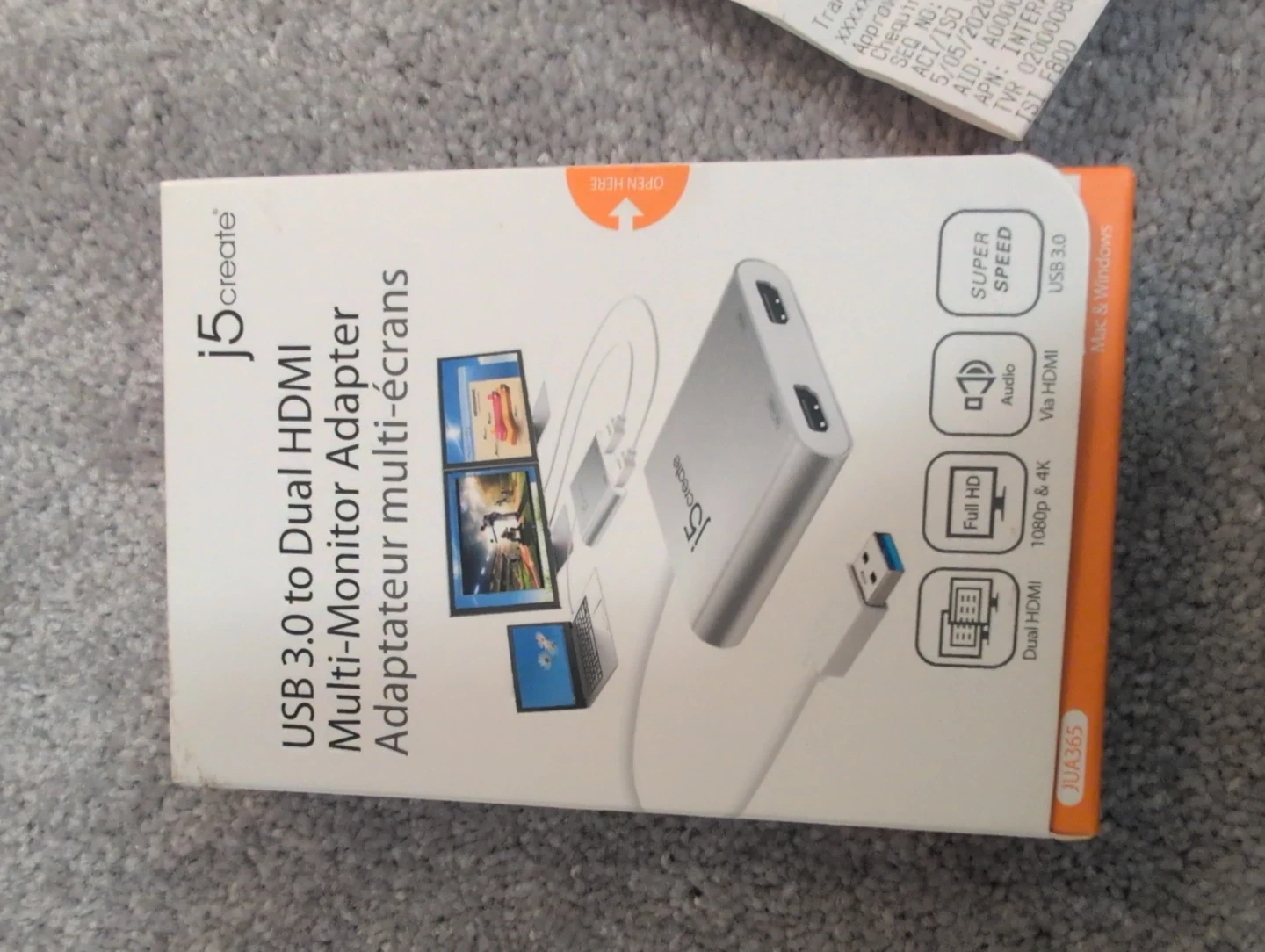 Selling a j5create USB 3.0 to Dual HDMI Multi-Monitor Adapter (model JUA365). It's compatible with both Mac and Windows and allows you to add two extra displays to any computer. The box is included!